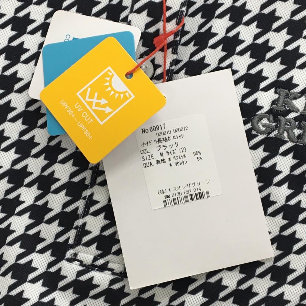 【新品】キスオンザグリーン 長袖ポロシャツ 白×黒 千鳥格子 UV レディース 2(M) ゴルフウェア kiss on the green