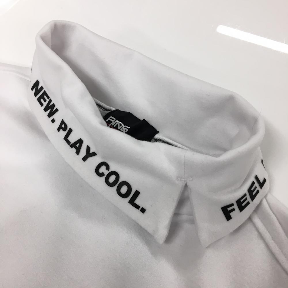 【新品】ピン 長袖ハイネックシャツ 白×黒 微起毛 ロゴ刺しゅう レディース S ゴルフウェア PING