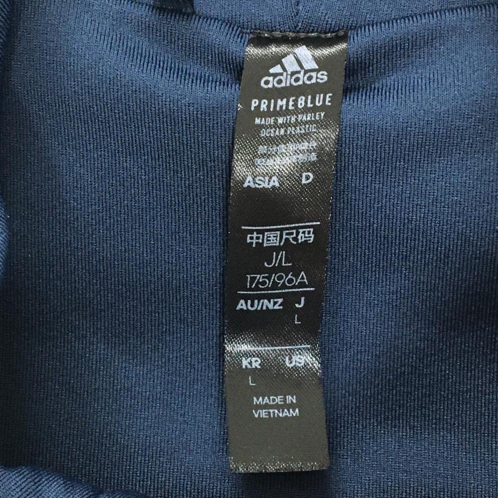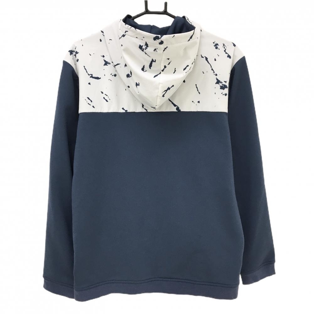 アディダス フード付きブルゾン ネイビー×白 ハーフジップ 上部総柄 裏起毛 メンズ L ゴルフウェア adidas