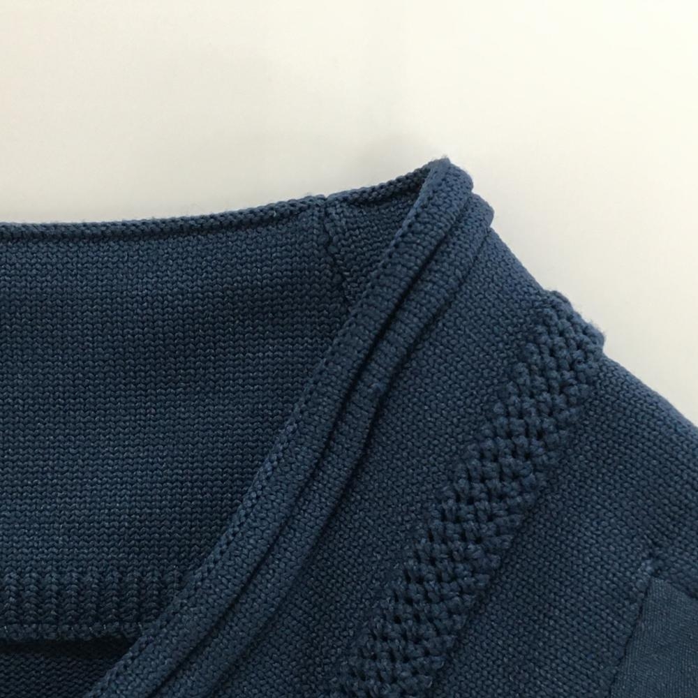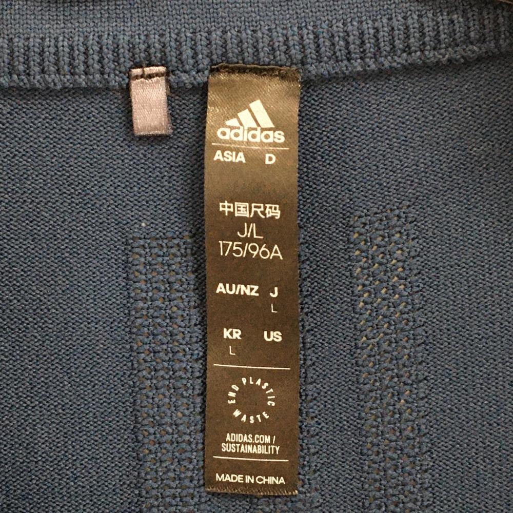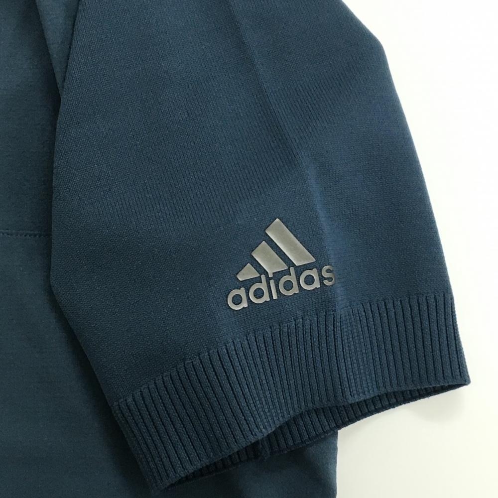 【美品】アディダス 異素材半袖ブルゾン ネイビー ハーフジップ 袖・肩ニット メンズ L ゴルフウェア adidas