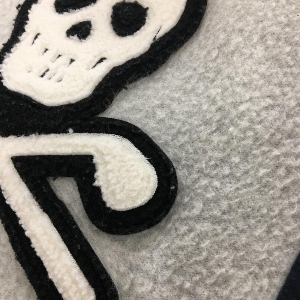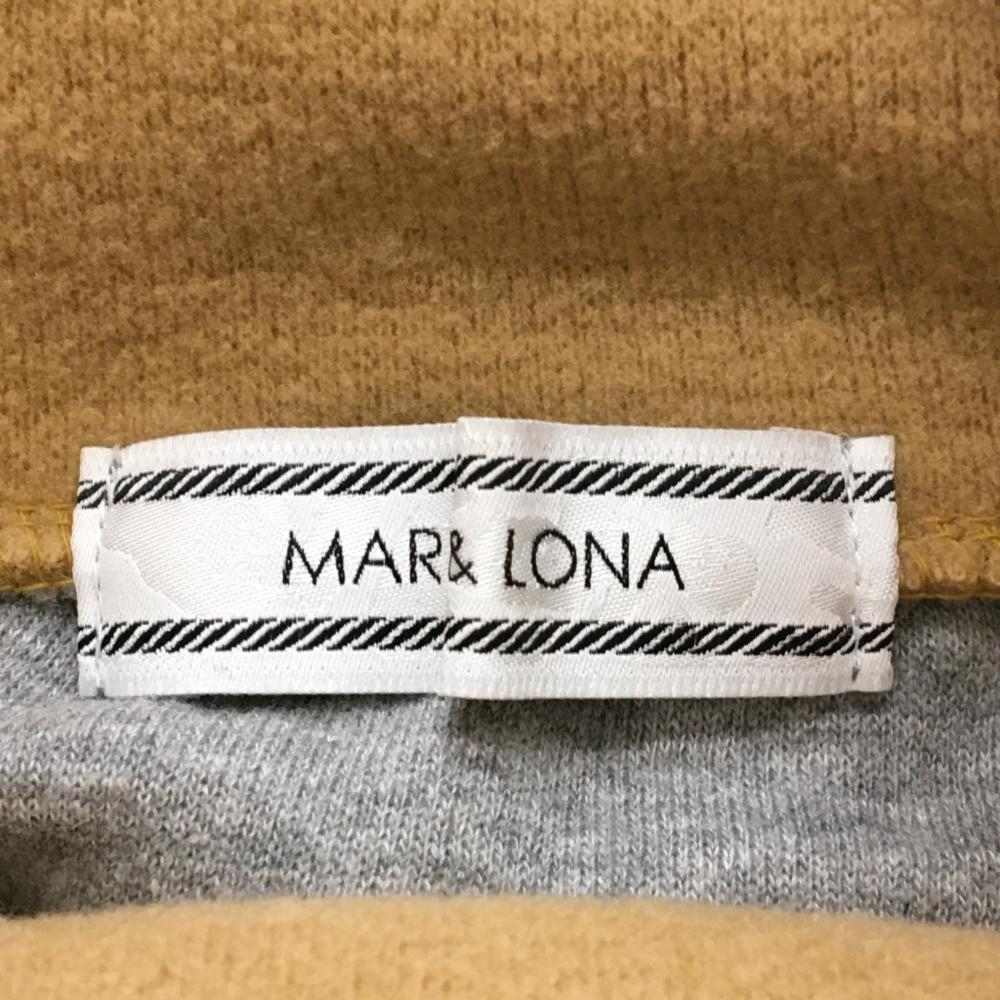 マークアンドロナ タートルネックトレーナー グレー×ライトブラウン スカル 一部起毛 レディース S ゴルフウェア MARK&LONA