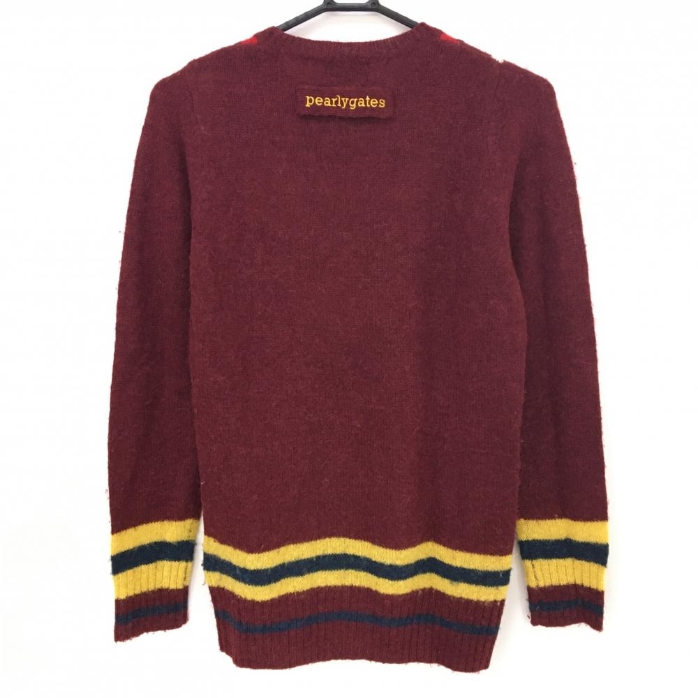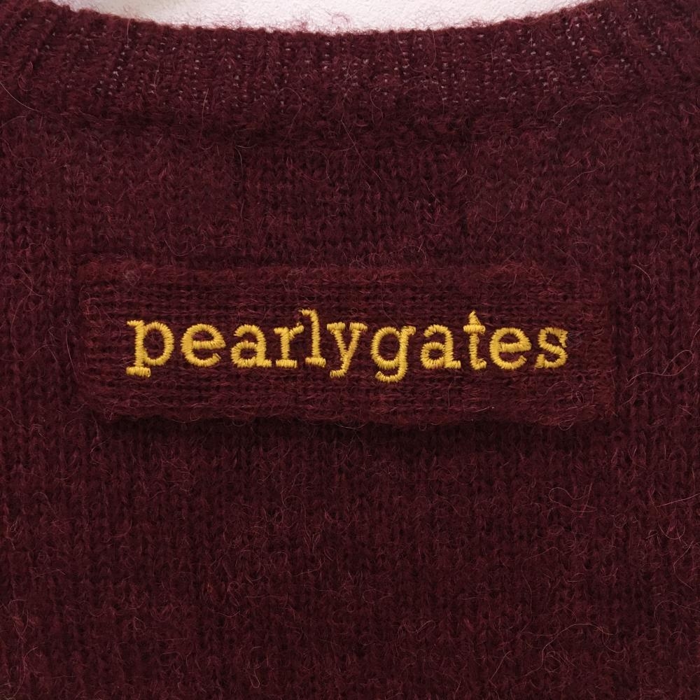 パーリーゲイツ セーター ボルドー×白 前身頃アーガイル柄 ニット アルパカ混 レディース 1(M) ゴルフウェア PEARLY GATES