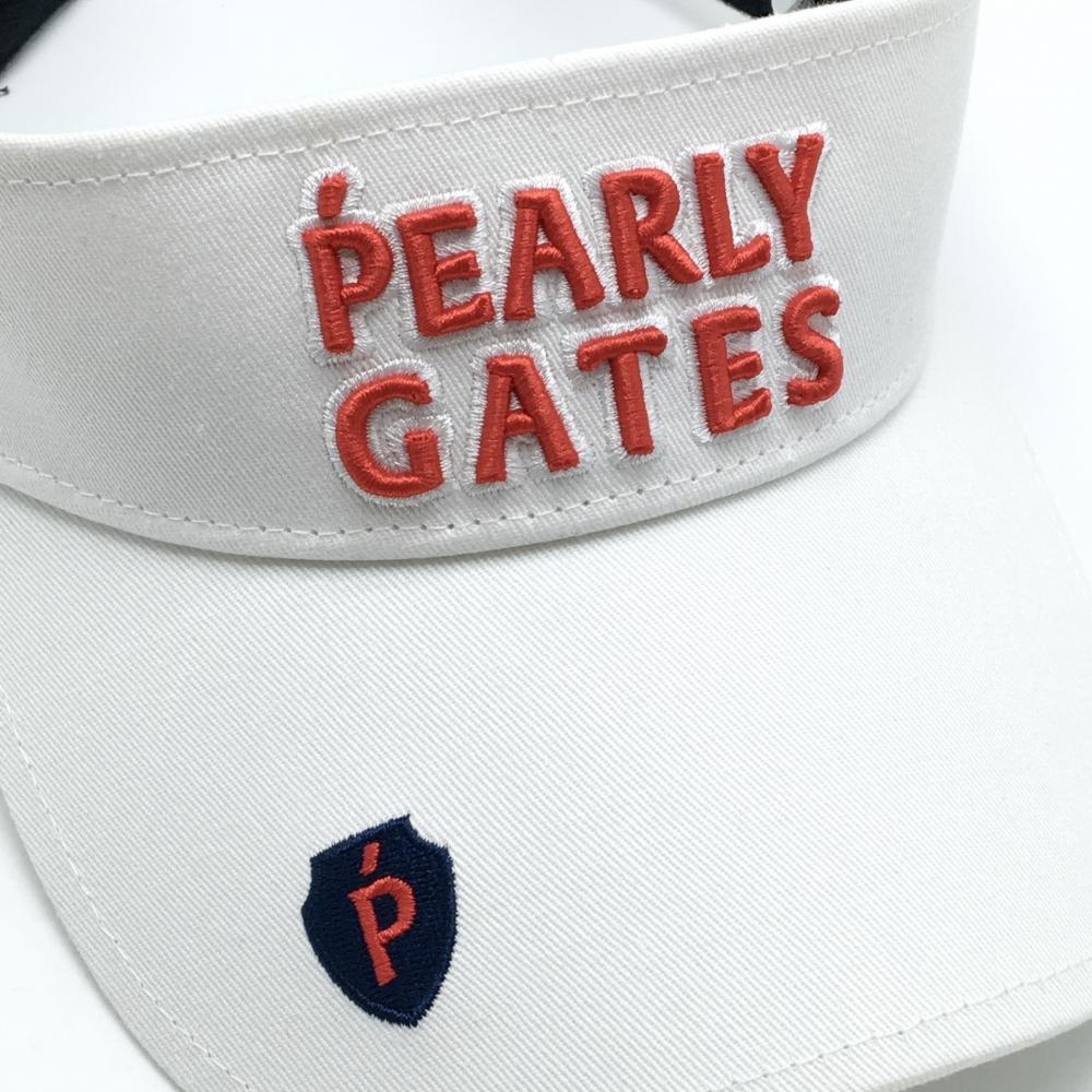 【超美品】パーリーゲイツ サンバイザー 白×レッド 汗取りパッド付 立体ロゴ FR ゴルフウェア PEARLY GATES