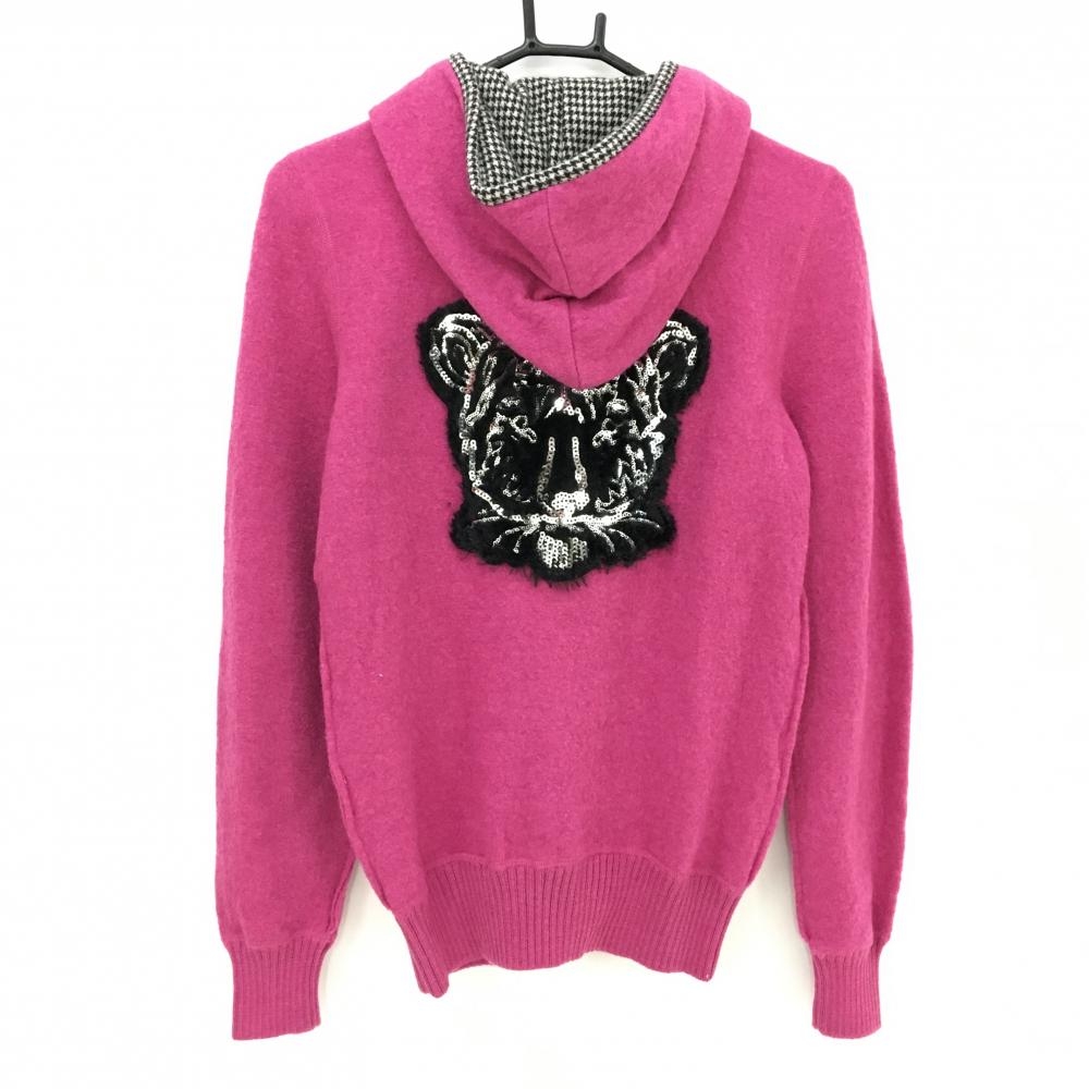 【美品】ダンスウィズドラゴン ジップパーカー ピンク 背面タイガー スパンコール レディース 3(L) ゴルフウェア Dance With Dragon