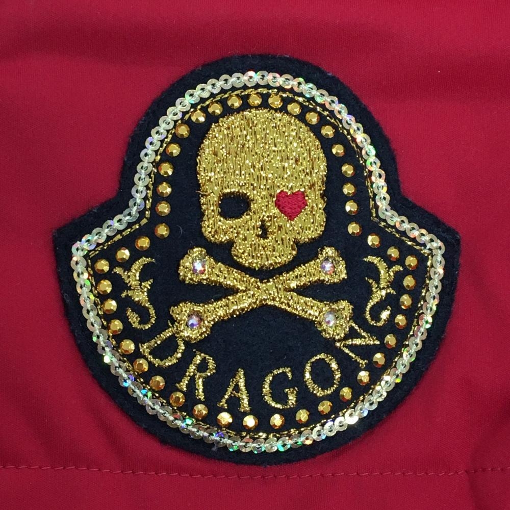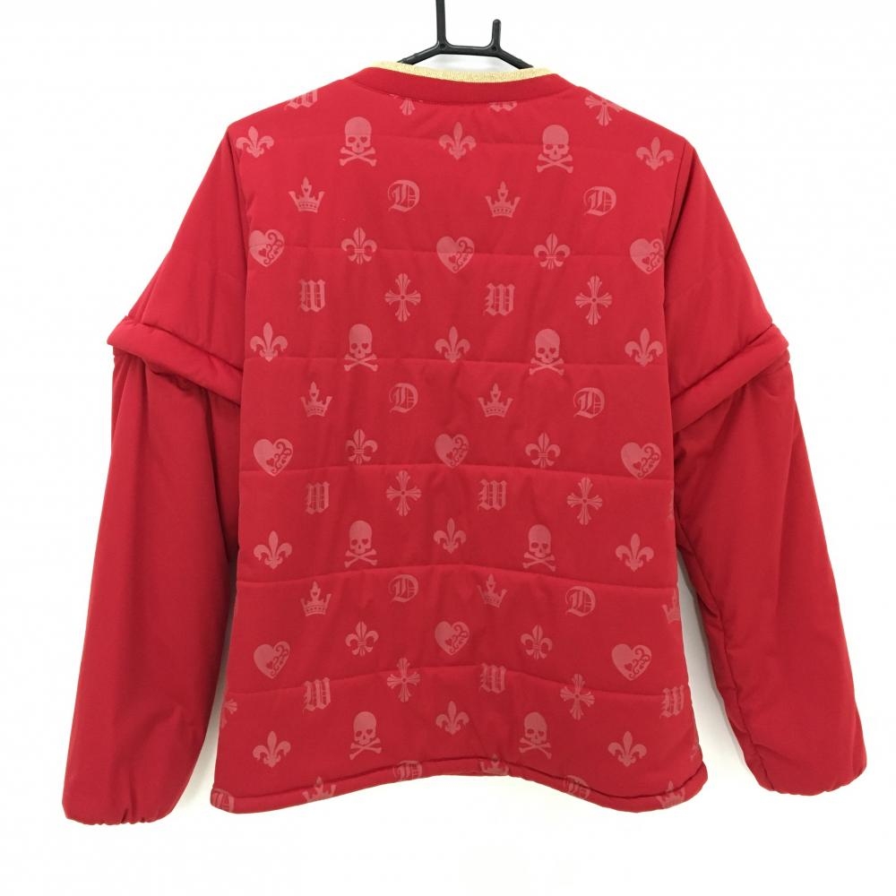 【美品】ダンスウィズドラゴン 2WAY中綿スニード レッド Vネック 蓄熱裏地 スカル レディース 3(L) ゴルフウェア Dance With Dragon