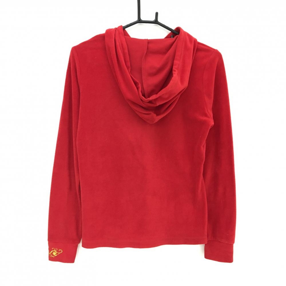 【美品】ダンスウィズドラゴン フード付長袖シャツ レッド フリース 袖口ロゴ刺しゅう レディース 3(L) ゴルフウェア Dance With Dragon