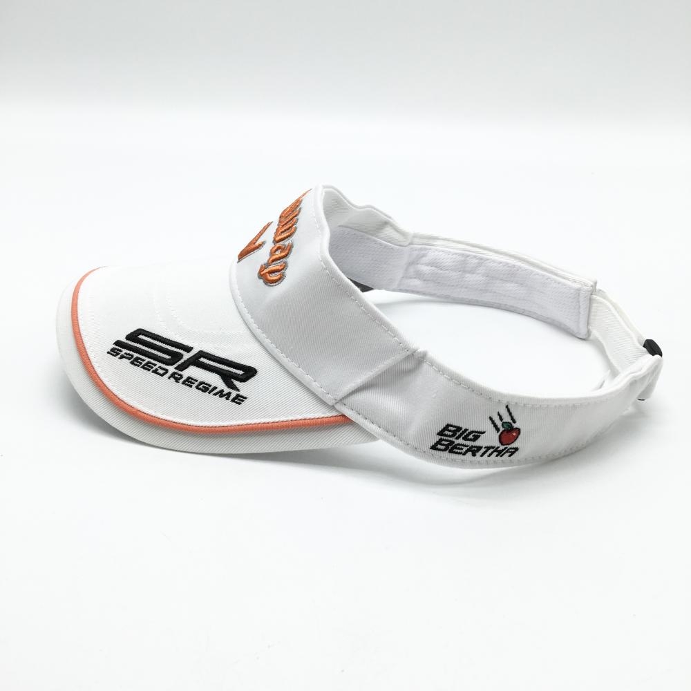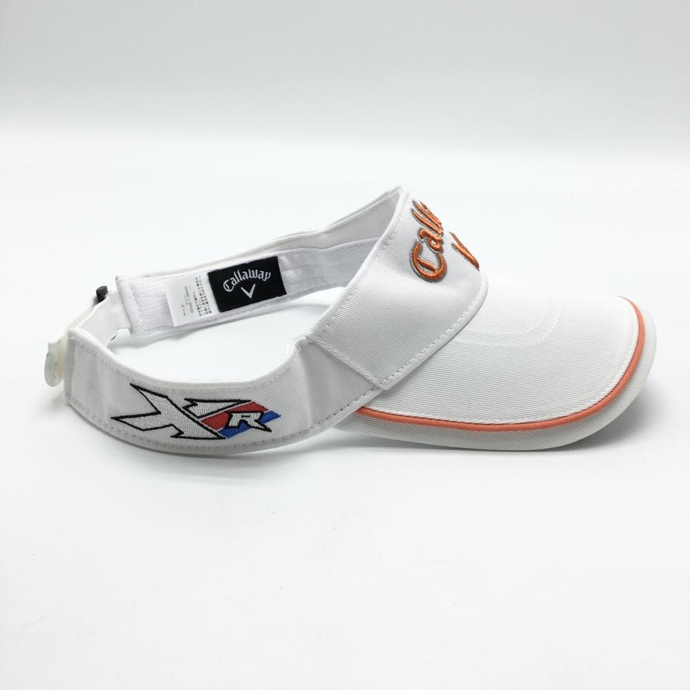 【超美品】キャロウェイ サンバイザー 白×オレンジ 立体ロゴ刺しゅう フリー(57-59cm) ゴルフウェア Callaway