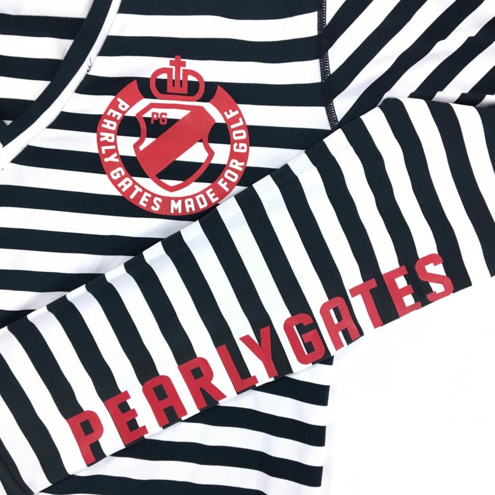 パーリーゲイツ インナーシャツ 白×ネイビー ボーダー ロゴプリント ストレッチ メンズ 4(M) ゴルフウェア PEARLY GATES