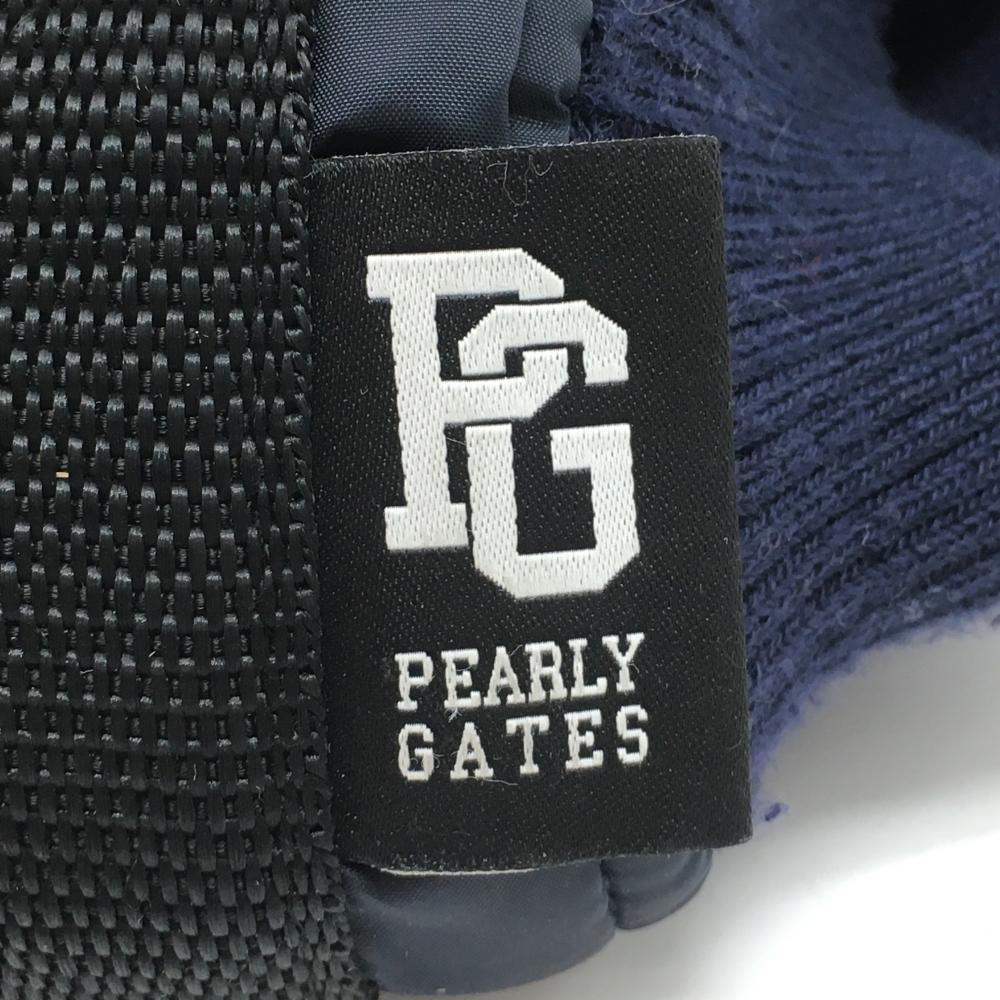 パーリーゲイツ ハンドウォーマー ネイビー×白 内側フリース ポケット付き ゴルフウェア PEARLY GATES