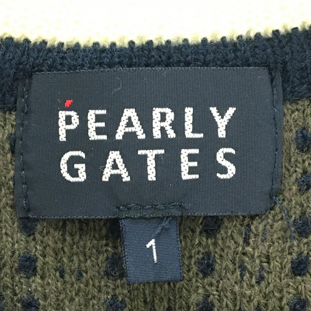 【美品】パーリーゲイツ ニットベスト ネイビー×カーキ 総柄編み ウール混 Vネック レディース 1(M) ゴルフウェア PEARLY GATES