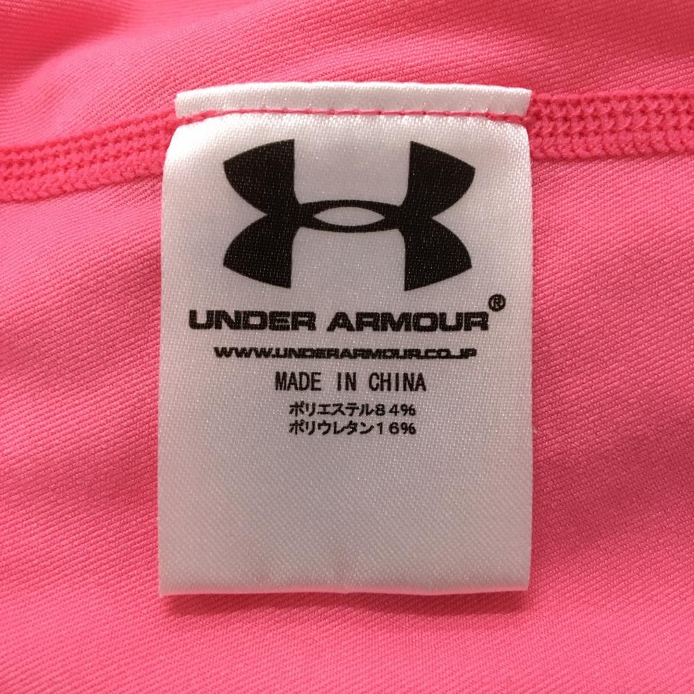 【美品】アンダーアーマー ハイネックインナーシャツ ピンク ネックロゴ刺しゅう レディース MD ゴルフウェア UNDER ARMOUR