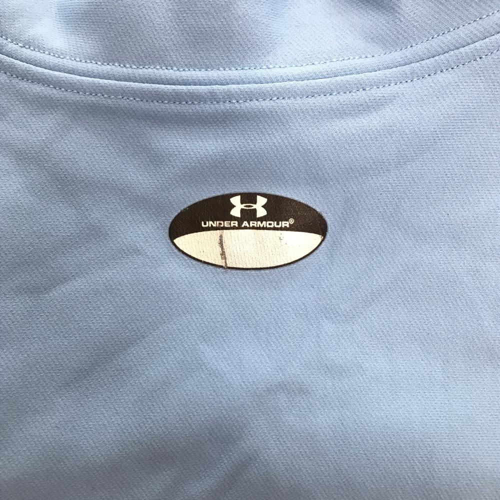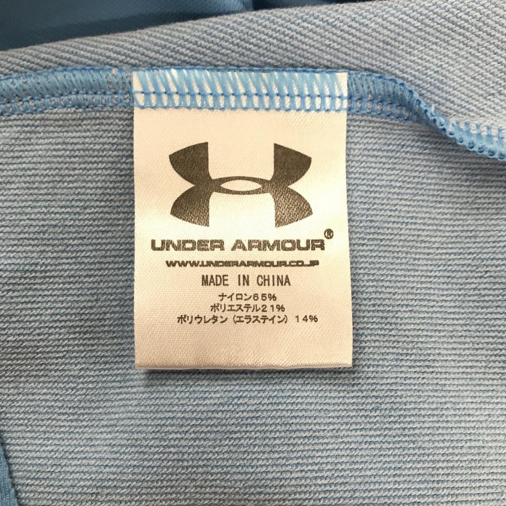 【美品】アンダーアーマー ハイネックインナーシャツ ライトブルー ネックロゴ刺しゅう レディース MD ゴルフウェア UNDER ARMOUR