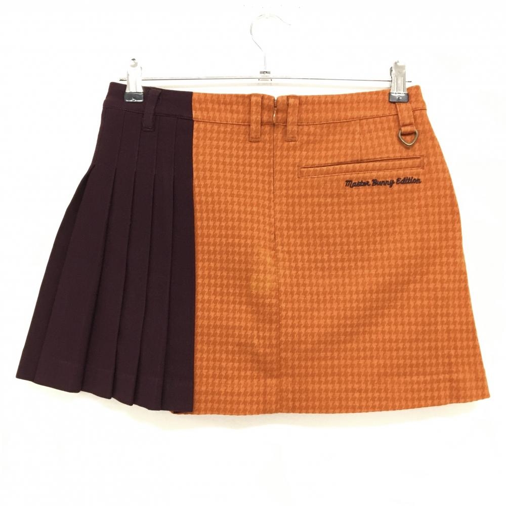 【美品】マスターバニー スカート オレンジ×ボルドー サイドプリーツ 裏微起毛 レディース 0(S) ゴルフウェア MASTER BUNNY EDITION