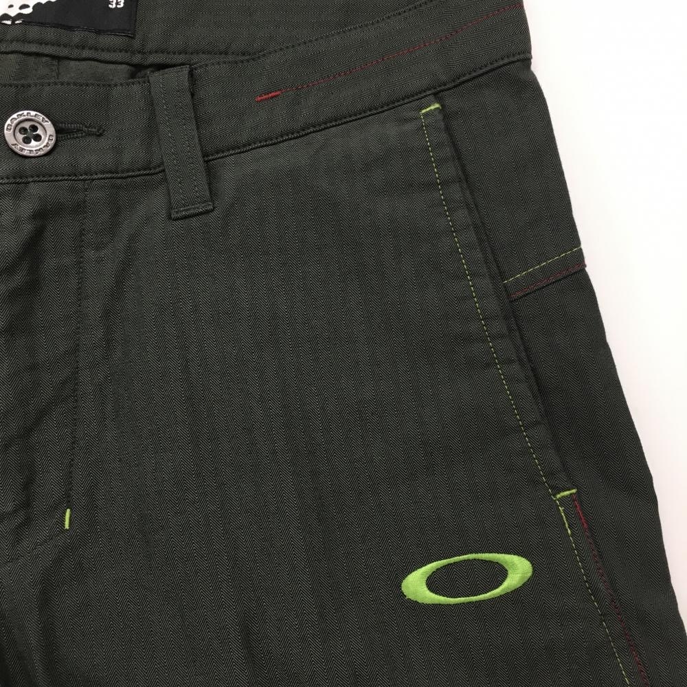 【美品】オークリー パンツ カーキ ヘリンボーン織生地 ロゴライトグリーン ティー装着可 メンズ 33 ゴルフウェア Oakley