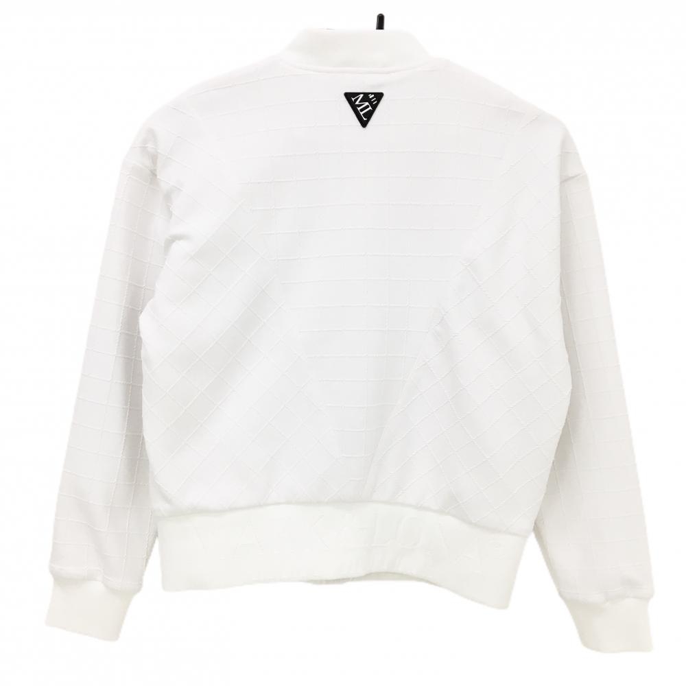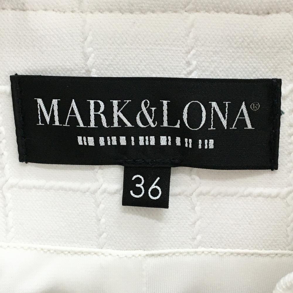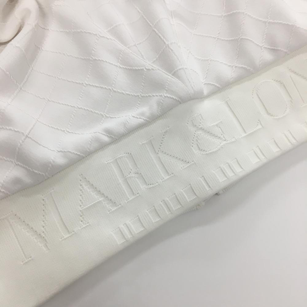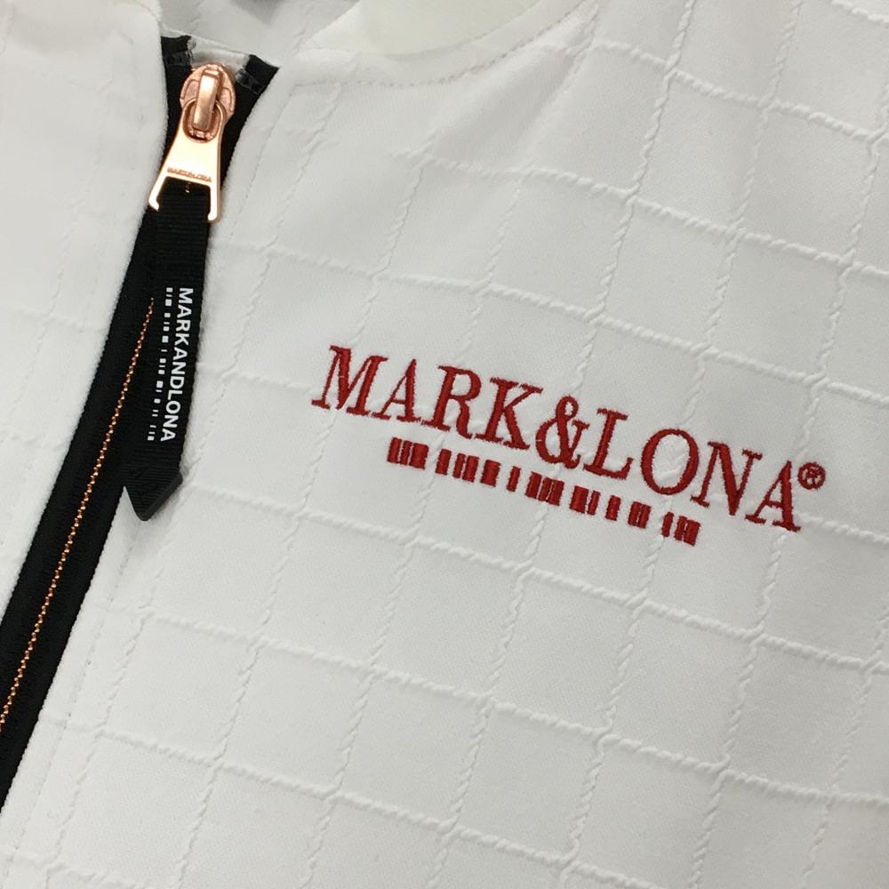 【超美品】マークアンドロナ ブルゾン 白 格子柄織生地 ロゴ レディース 36(S) ゴルフウェア MARK&LONA