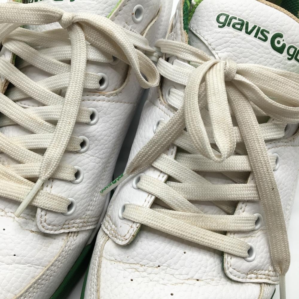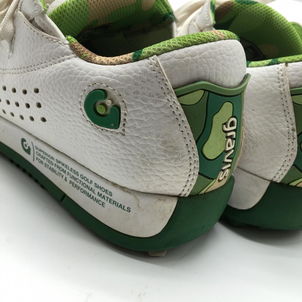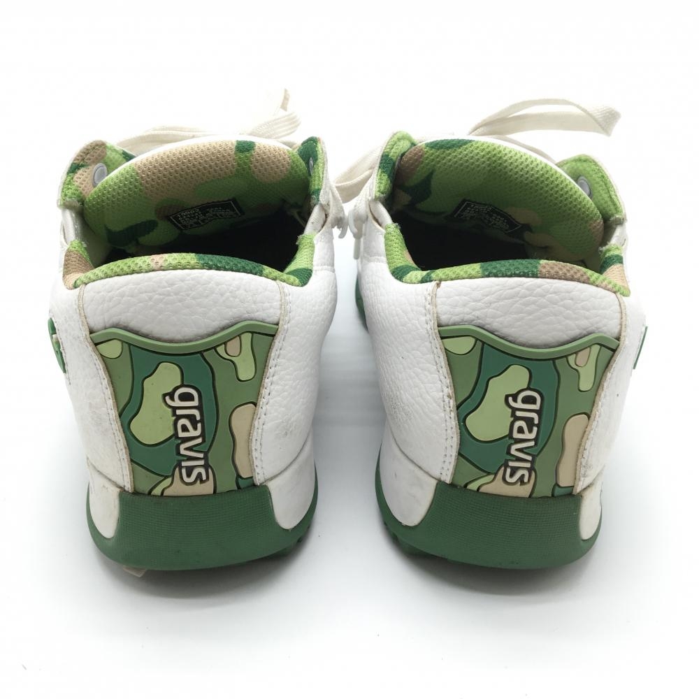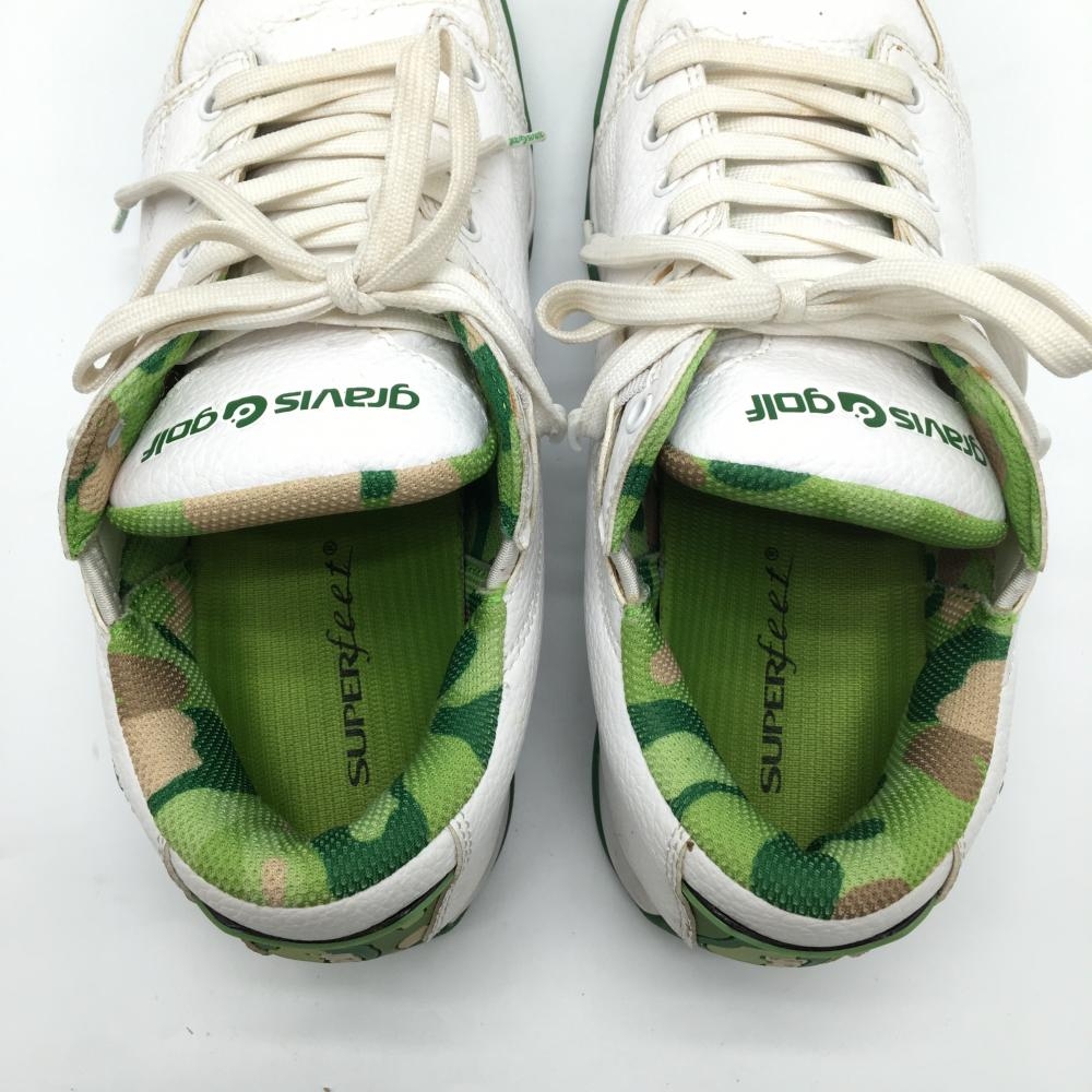 【美品】グラビス ゴルフシューズ 白×グリーン 15903 一部カモフラ柄 スパイクレス メンズ 25.5 ゴルフウェア gravis golf