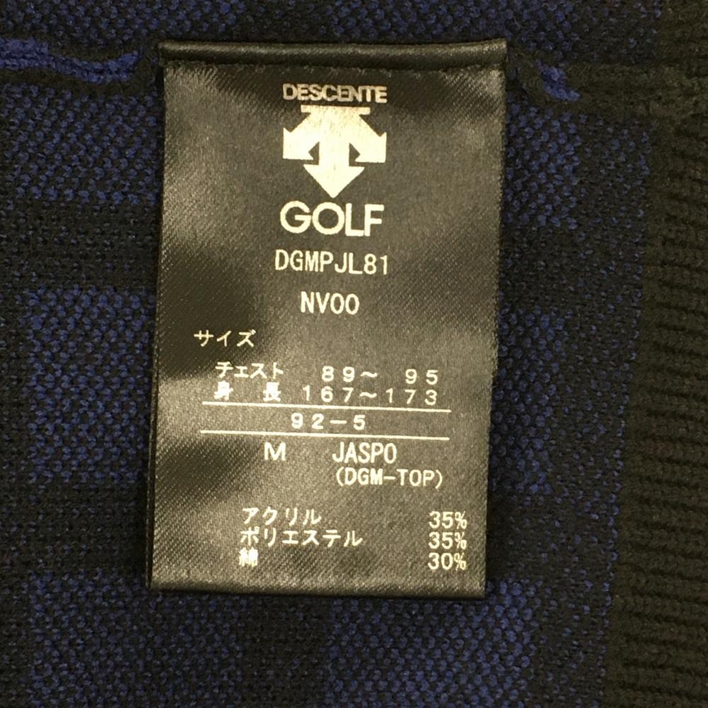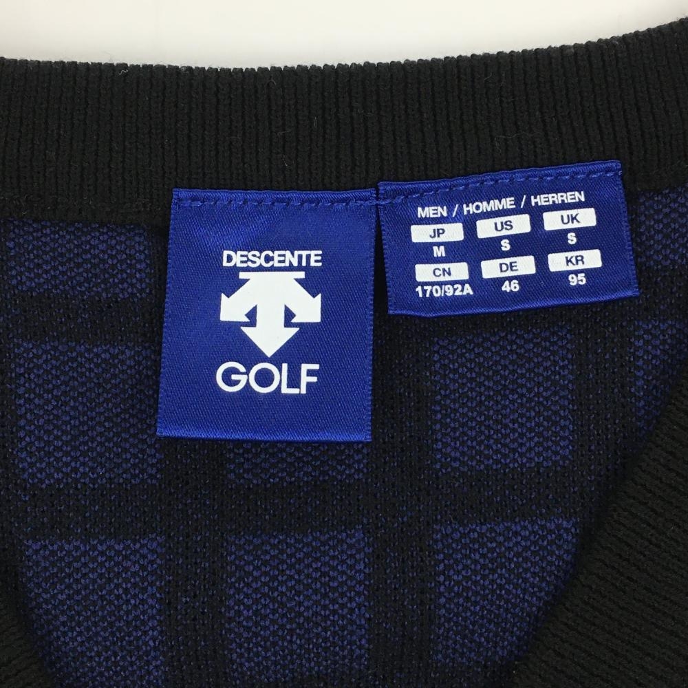【超美品】デサントゴルフ ニットベスト 黒×ブルー 格子柄 ロゴ刺しゅう Vネック 中田英寿 メンズ M ゴルフウェア DESCENTE