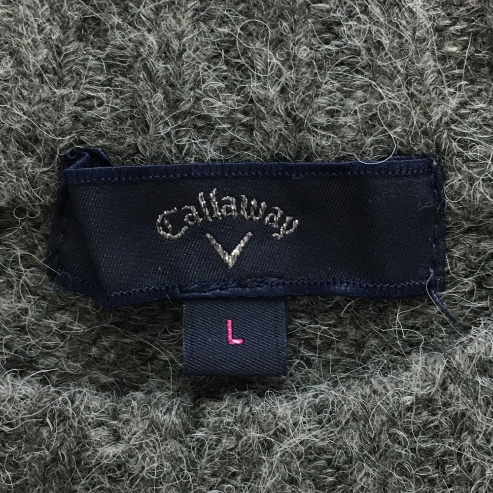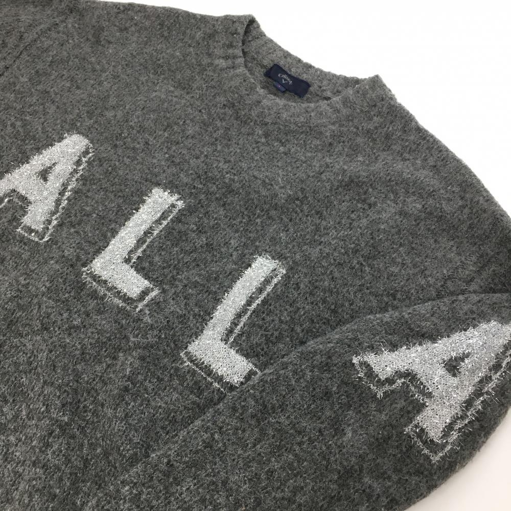 【美品】キャロウェイ セーター 杢グレー×シルバー フロントロゴ ウール混 ニット レディース L ゴルフウェア 2024年モデル Callaway