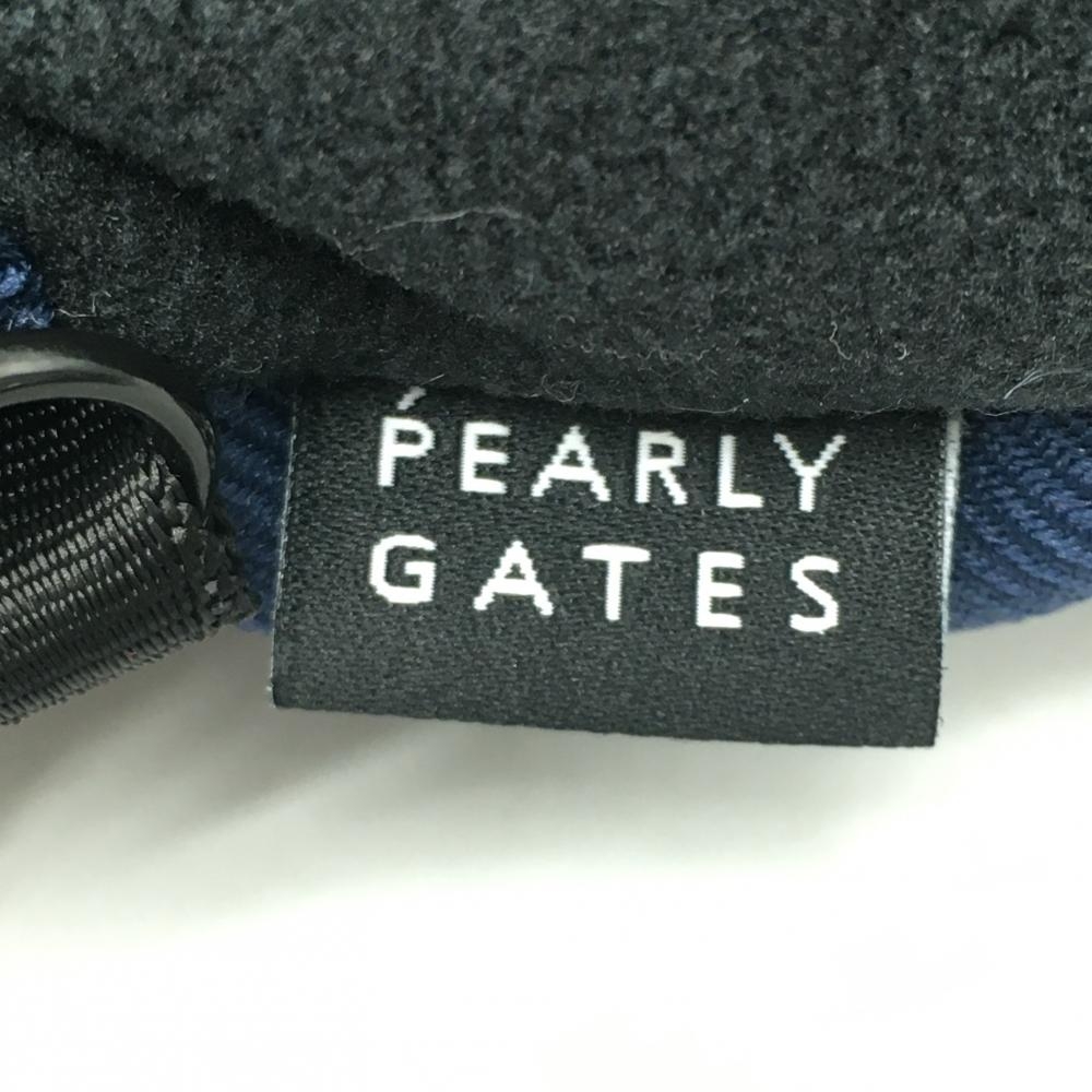 【超美品】パーリーゲイツ 手袋 ネイビー×黒 ロゴ刺しゅう ミトングローブ 一部フリース メンズ ゴルフウェア PEARLY GATES