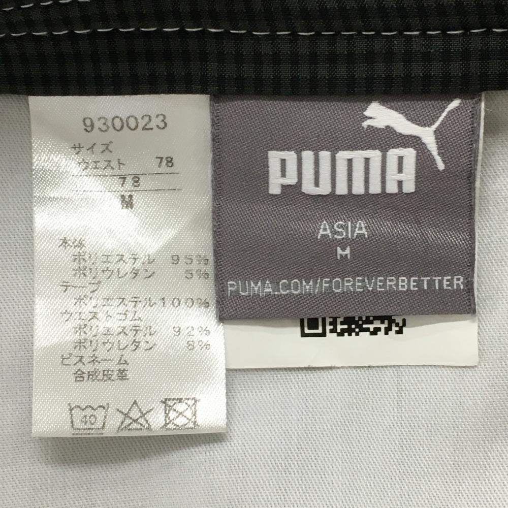 【美品】プーマ パンツ グレー×黒 チェック ストレッチ ロゴひび割れ小 メンズ M ゴルフウェア PUMA