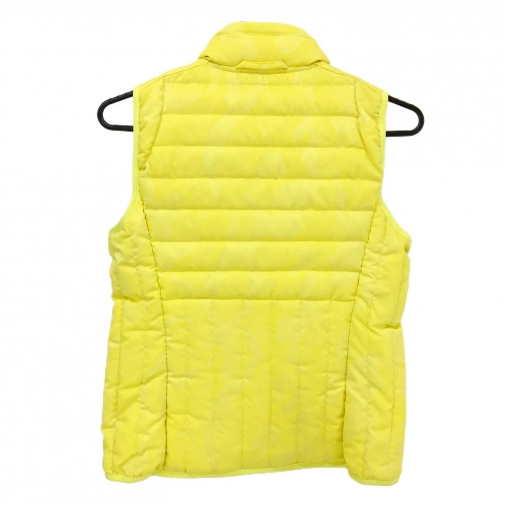 マークアンドロナ ダウンベスト イエロー 迷彩調地模様 カモフラ スカル ポケッタブル 収納可 レディース 38(M) ゴルフウェア MARK&LONA