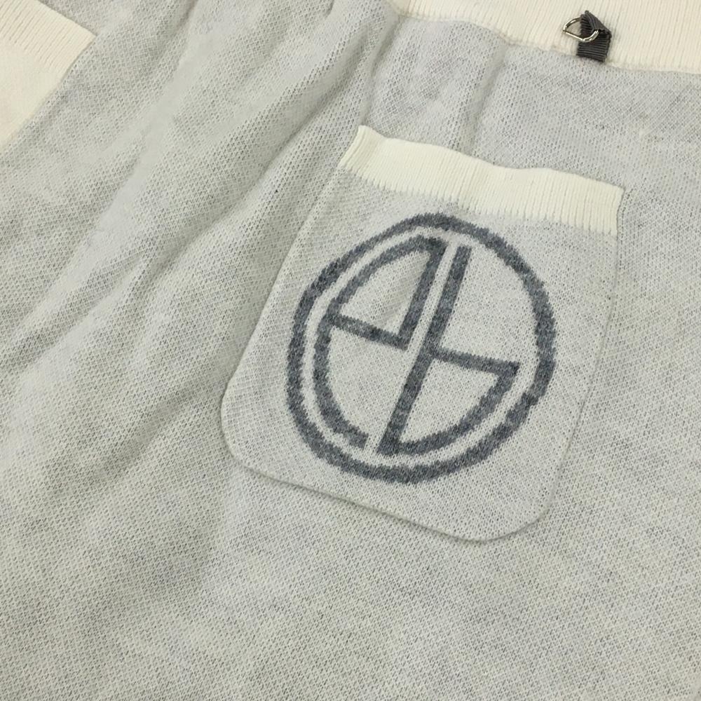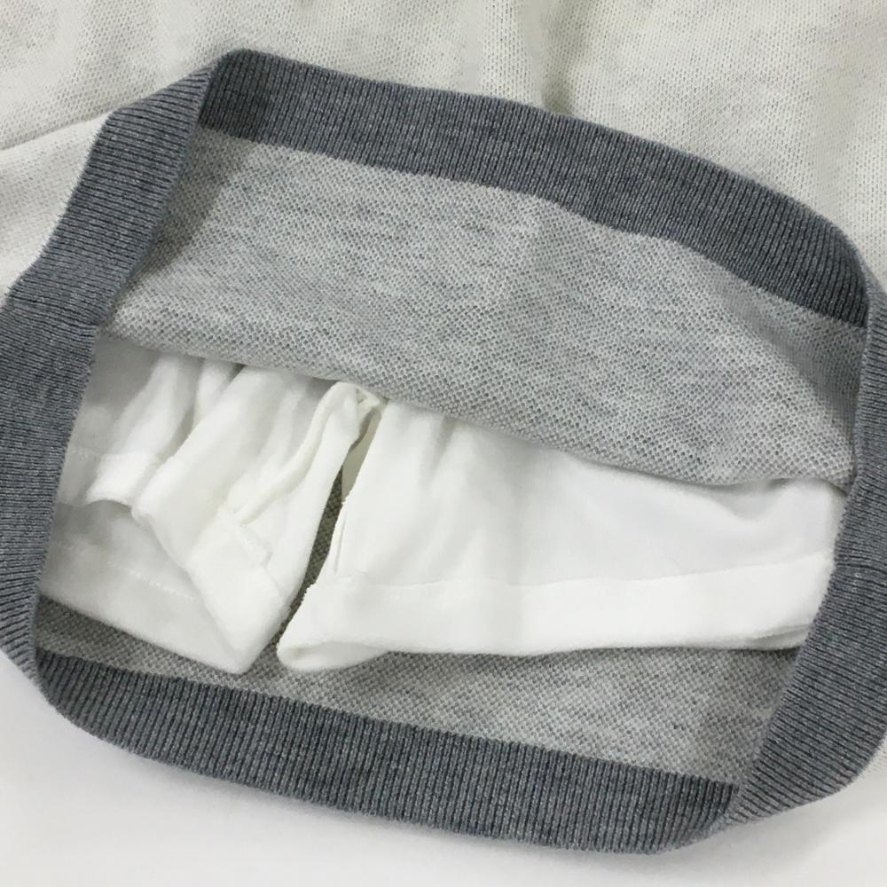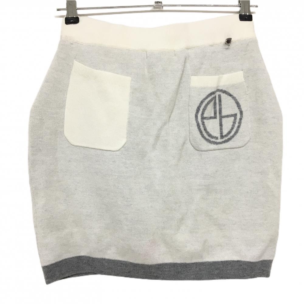 エフィカスブラン ニットスカート 白×グレー ウエストゴム&調節紐 紙タグ付 内側起毛インナーパンツ レディース M ゴルフウェア efficace