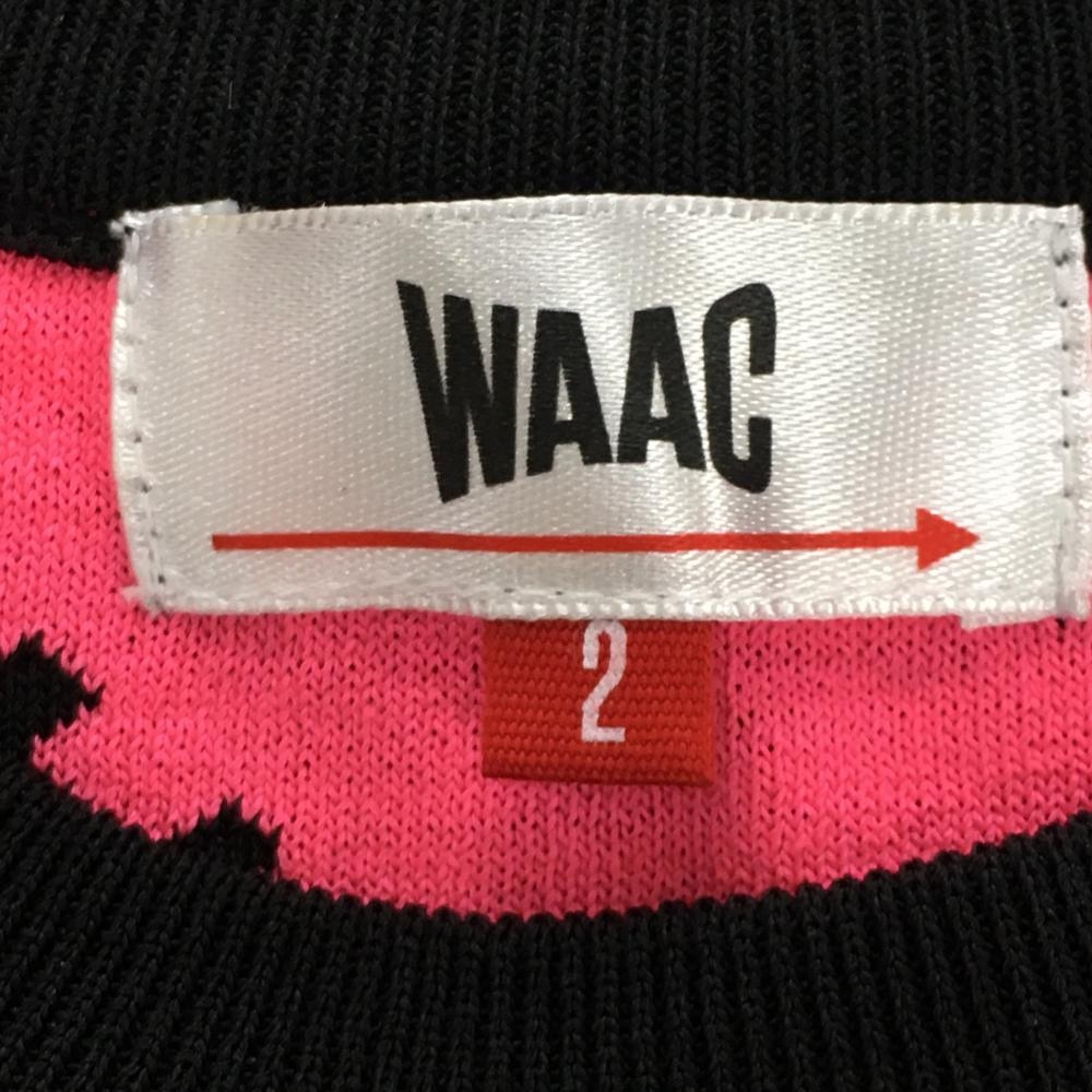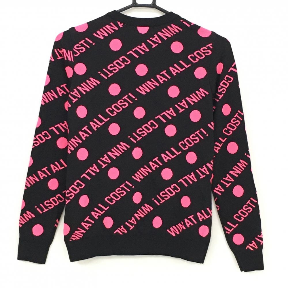 【超美品】ワック セーター 黒×蛍光ピンク ドット 英字総柄 韓国モデル ニット レディース 2(M) ゴルフウェア WAAC