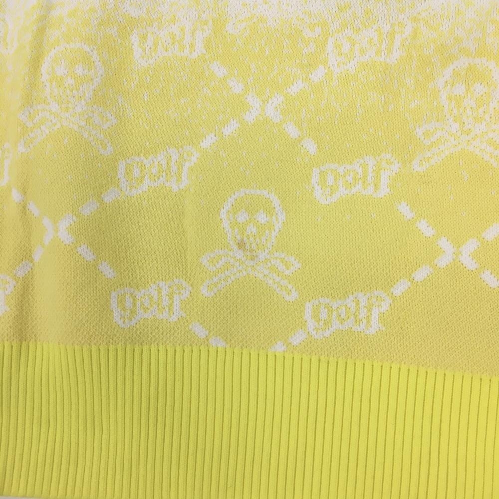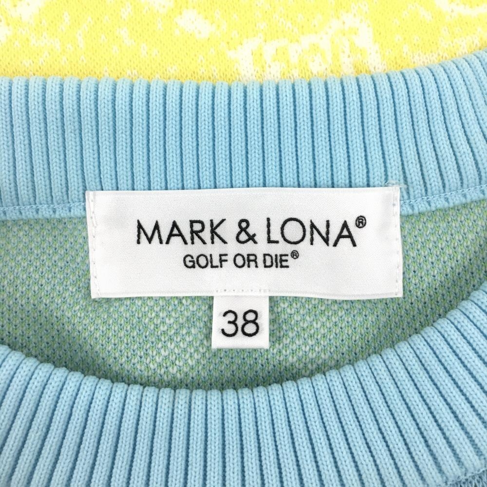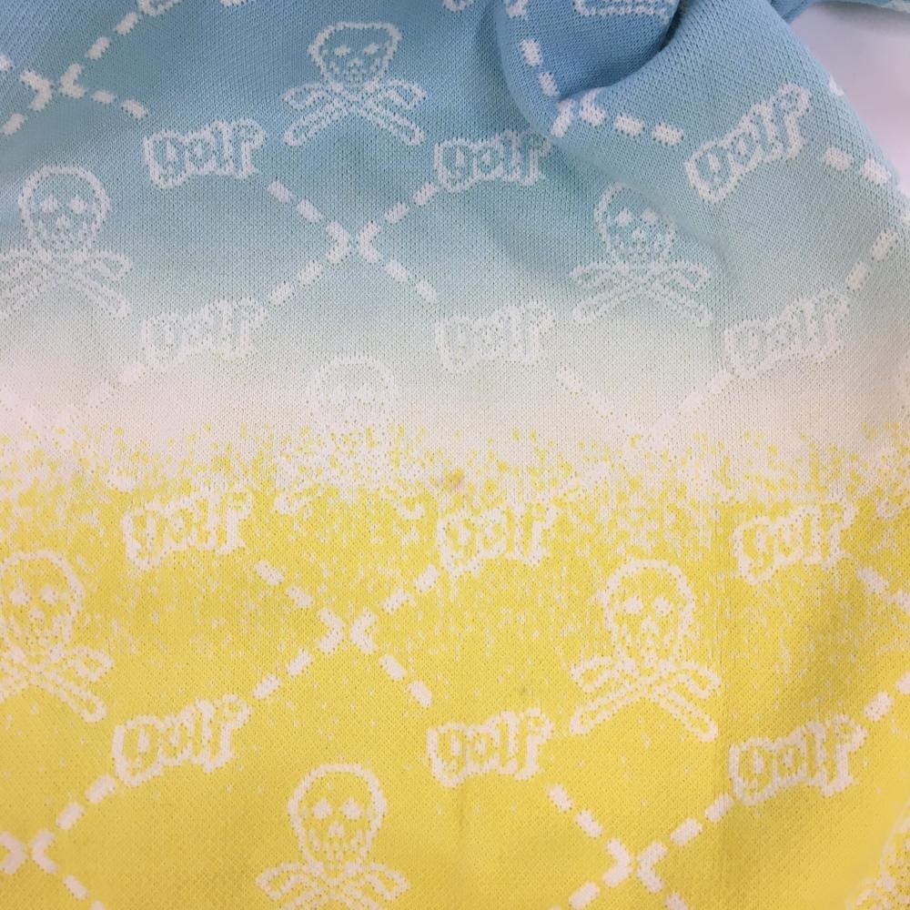 マークアンドロナ セーター ライトブルー×イエロー×白 スカル総柄 ニット グラデーション レディース 38(M) ゴルフウェア MARK&LONA