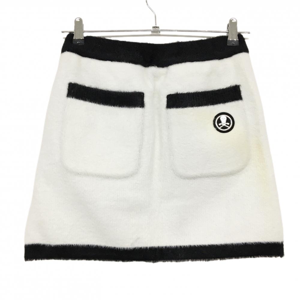 マークアンドロナ ニットスカート 白×黒 起毛素材 ウエストゴム 裏地付 レディース 36(S) ゴルフウェア MARK&LONA