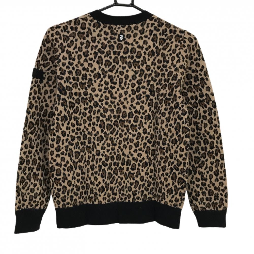 パーリーゲイツ セーター ライトブラウン×黒 レオパード ヒョウ柄 カシミヤ混 ニット レディース 1(M) ゴルフウェア PEARLY GATES