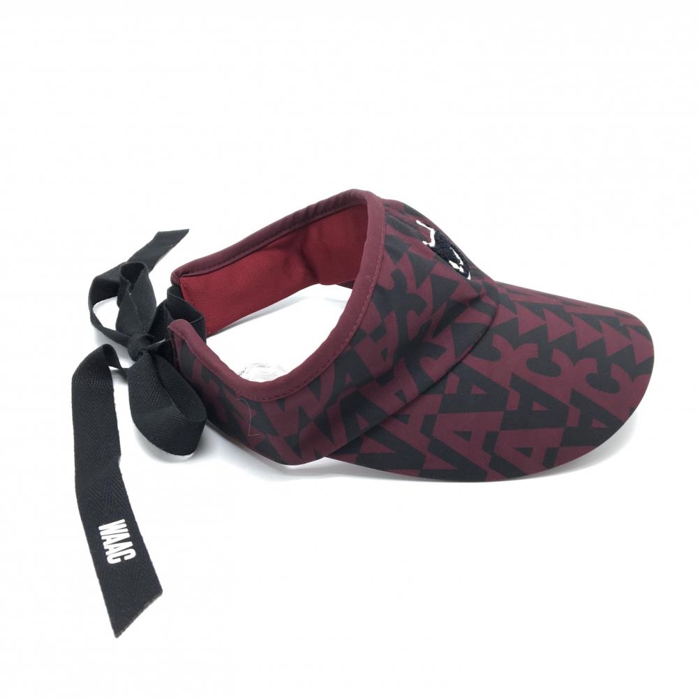 【超美品】ワック サンバイザー ダークパープル系×黒 総柄 ワッペン レディース 1098 ゴルフウェア WAAC