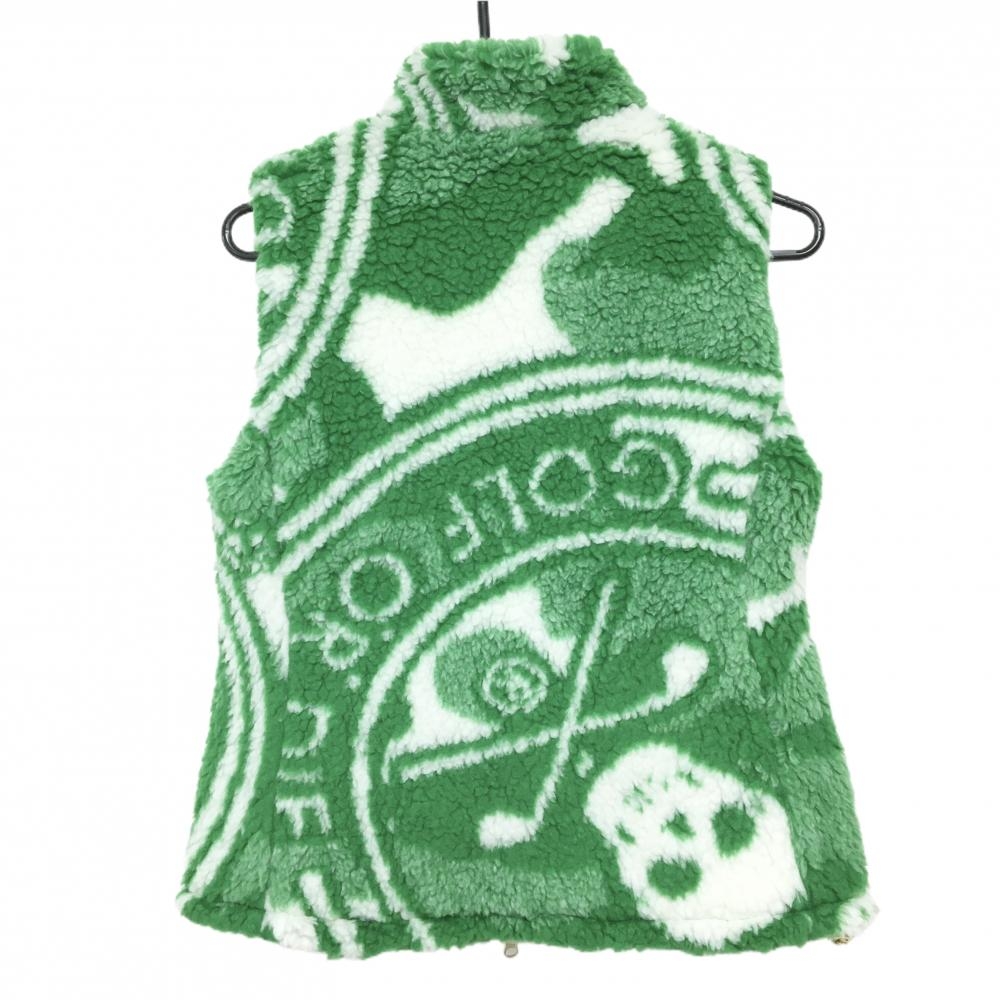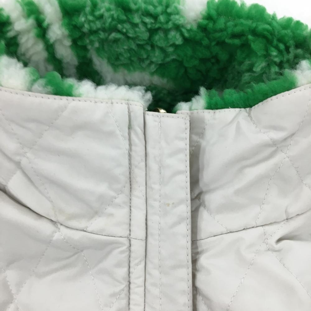 マークアンドロナ 中綿ボアリバーシブルベスト グリーン×白 総柄 裏ライトグレー レディース 38(M) ゴルフウェア MARK&LONA