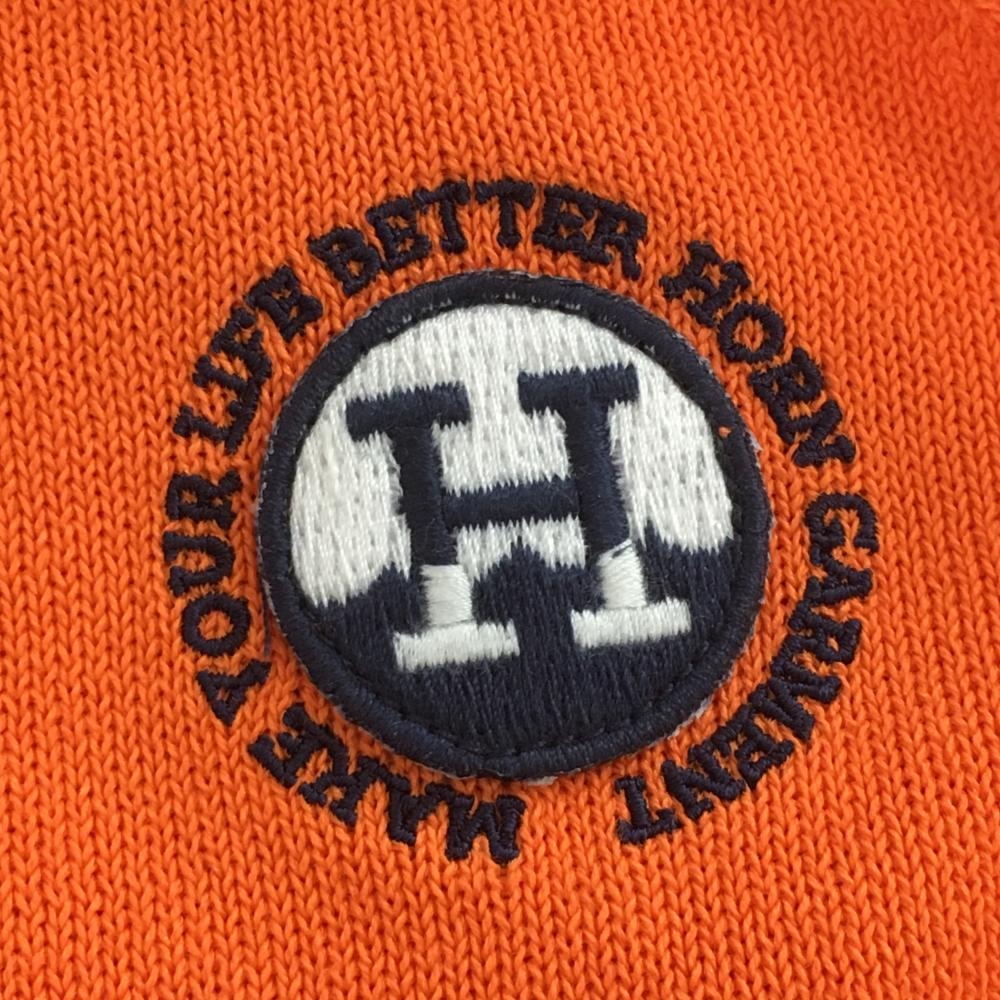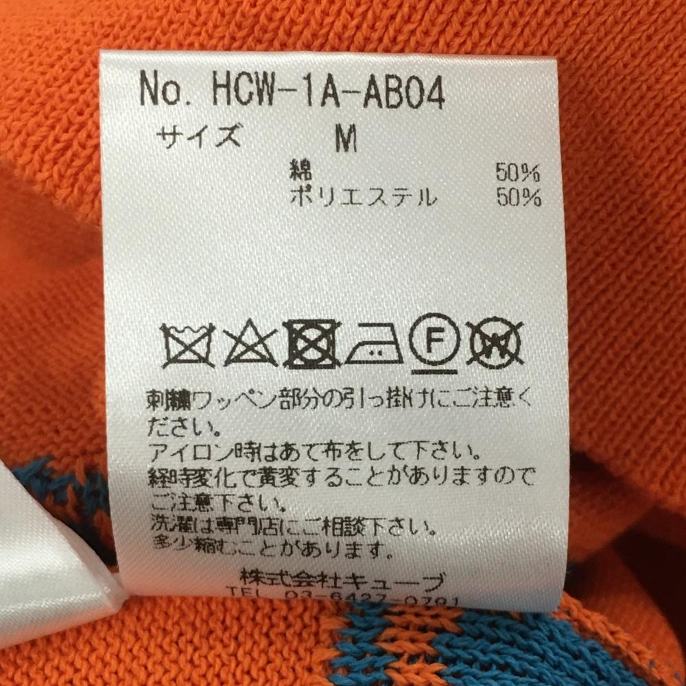 【超美品】ホーンガーメント ニットベスト オレンジ×マルチカラー 総柄 マークアンドロナ Vネック レディース M ゴルフウェア MARK&LONA