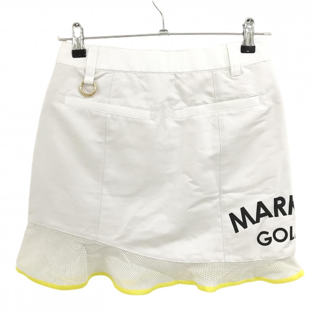 【美品】マークアンドロナ スカート 白×イエロー 裾メッシュ 内側インナーパンツ レディース 36(S) ゴルフウェア MARK&LONA