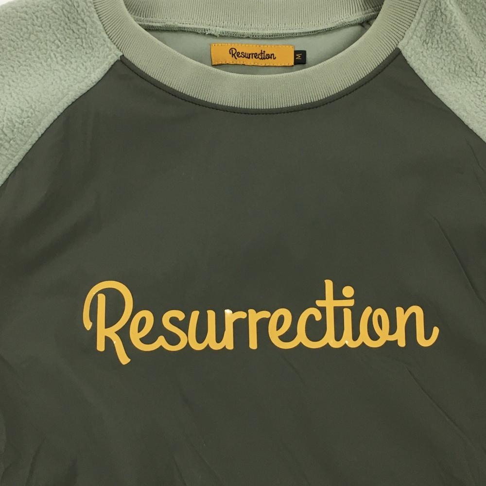【美品】レザレクション 異素材スニード カーキ系×ライトミントグリーン系 袖ボア ブルゾン レディース M ゴルフウェア Resurrection