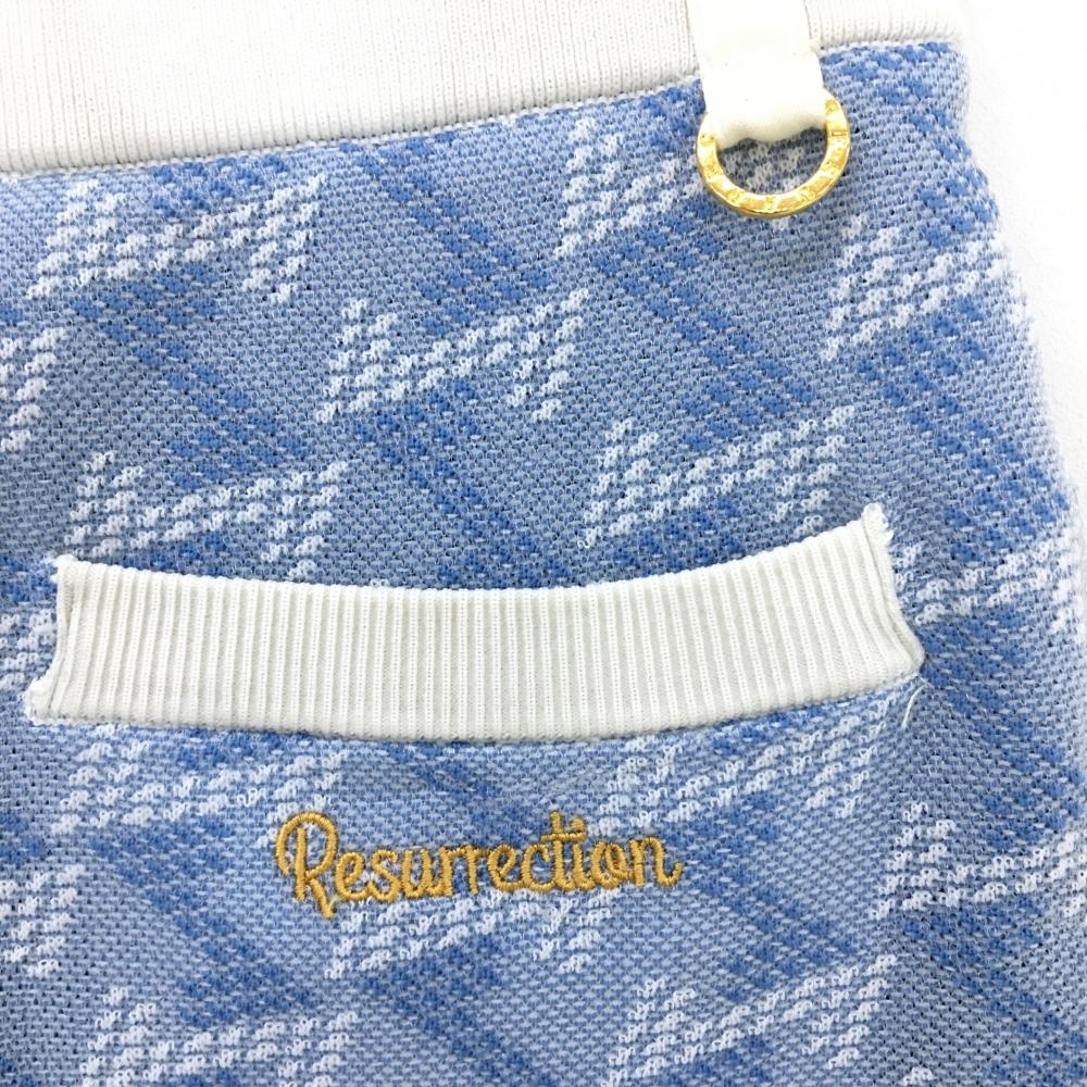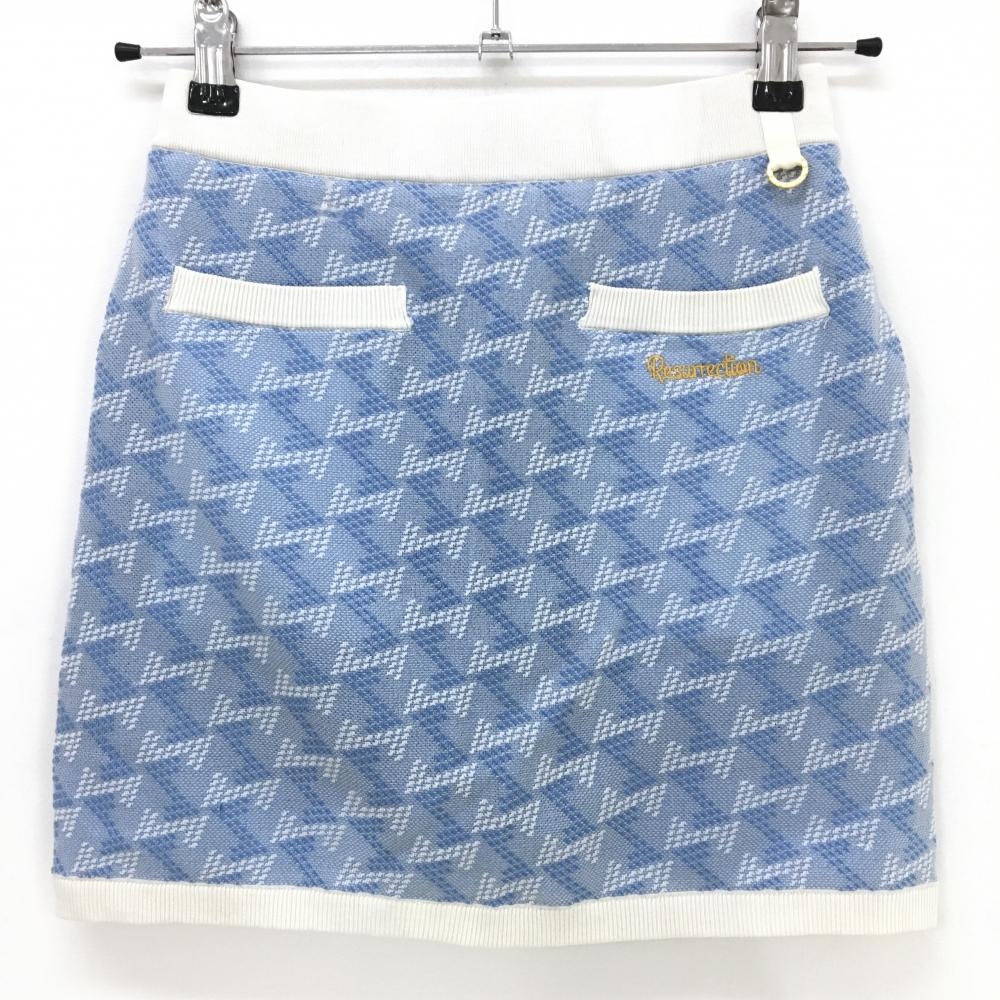 レザレクション ニットスカート ライトブルー×白 総柄 ストレッチ ウエストゴム&調節紐 レディース XS ゴルフウェア Resurrection