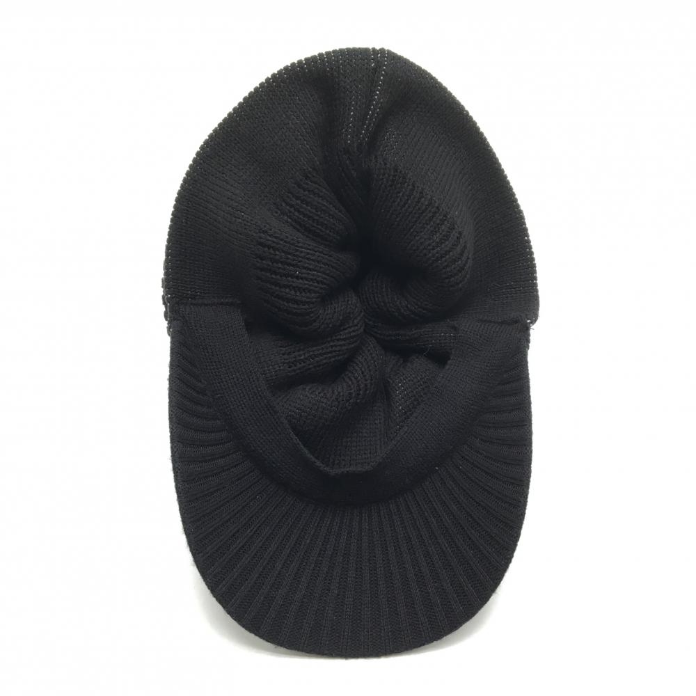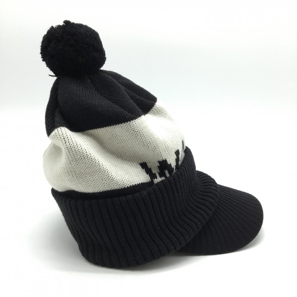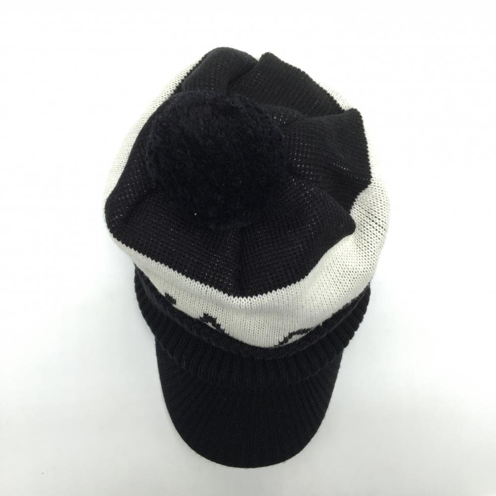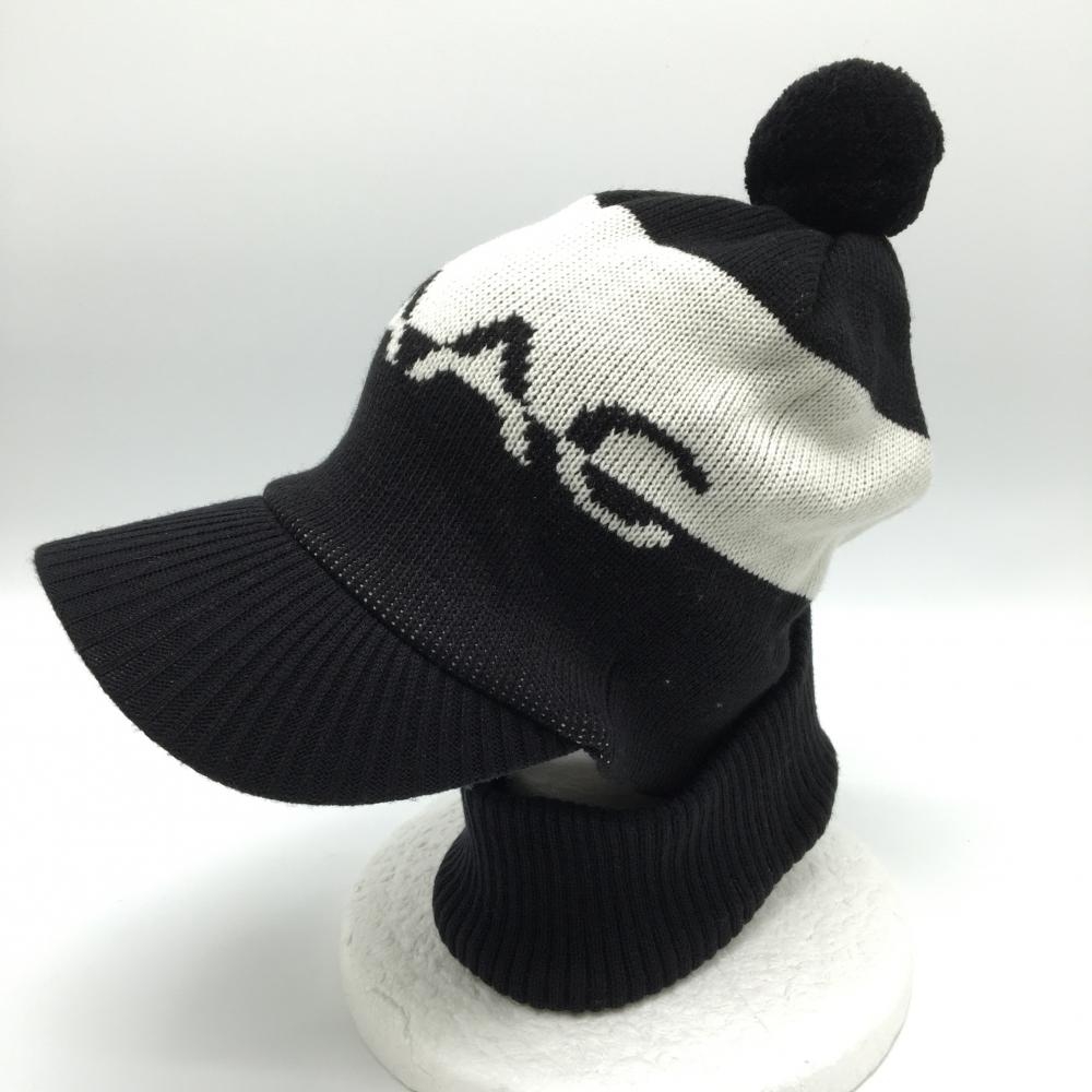 【超美品】ワック つば付ニット帽 黒×白 ボンボン・ネックウォーマー付 アクリル100% レディース FREE ゴルフウェア WAAC