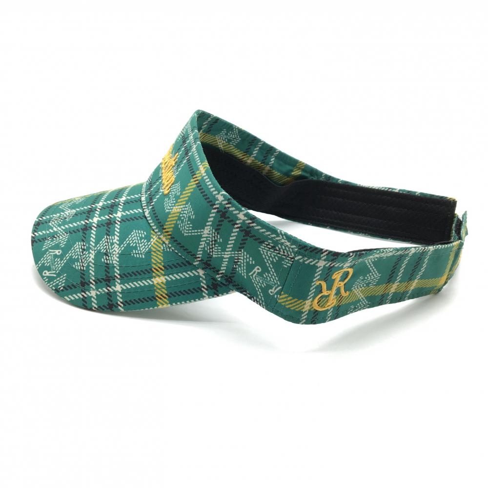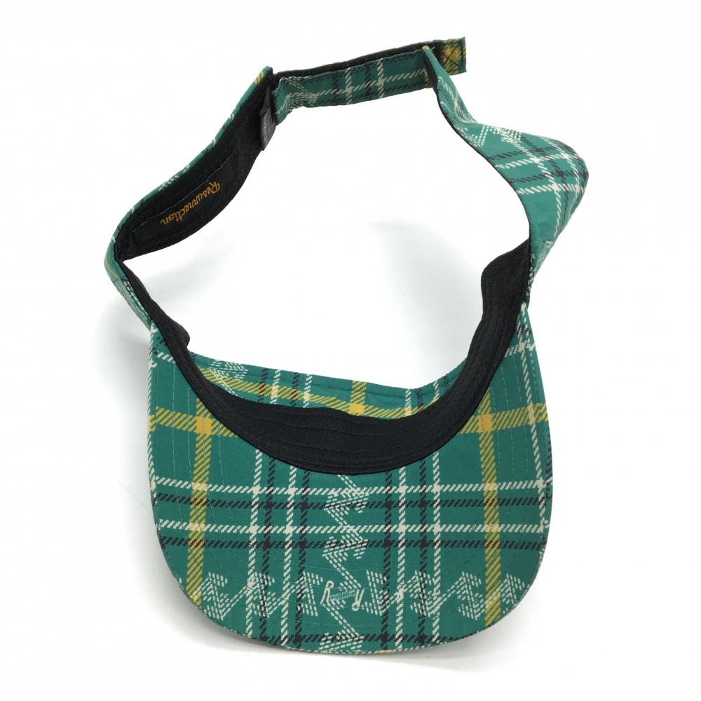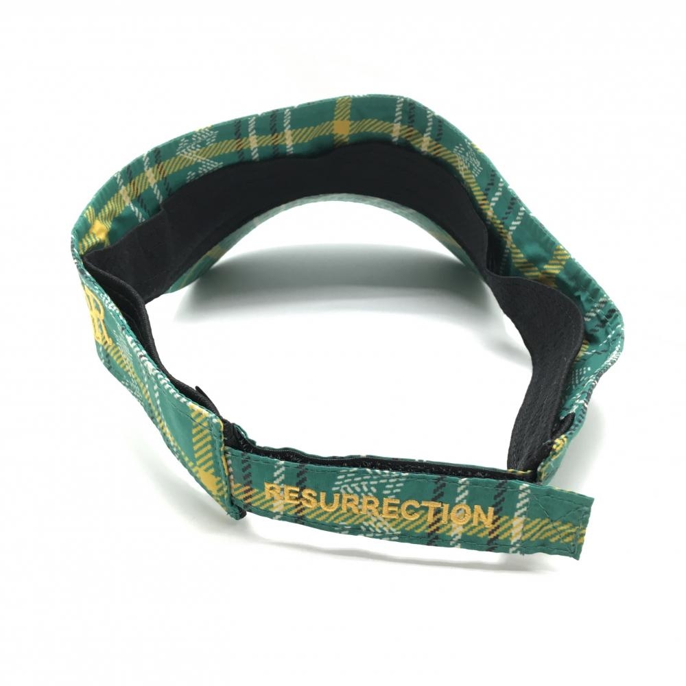 【超美品】レザレクション サンバイザー グリーン×白×イエロー チェック ロゴ刺しゅう フリーサイズ ゴルフウェア Resurrection