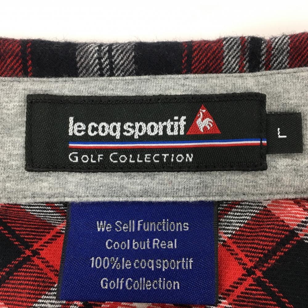 【美品】ルコックゴルフ 長袖ポロシャツ レッド×黒 チェック ボタンダウン サイドグレー メンズ L ゴルフウェア le coq sportif