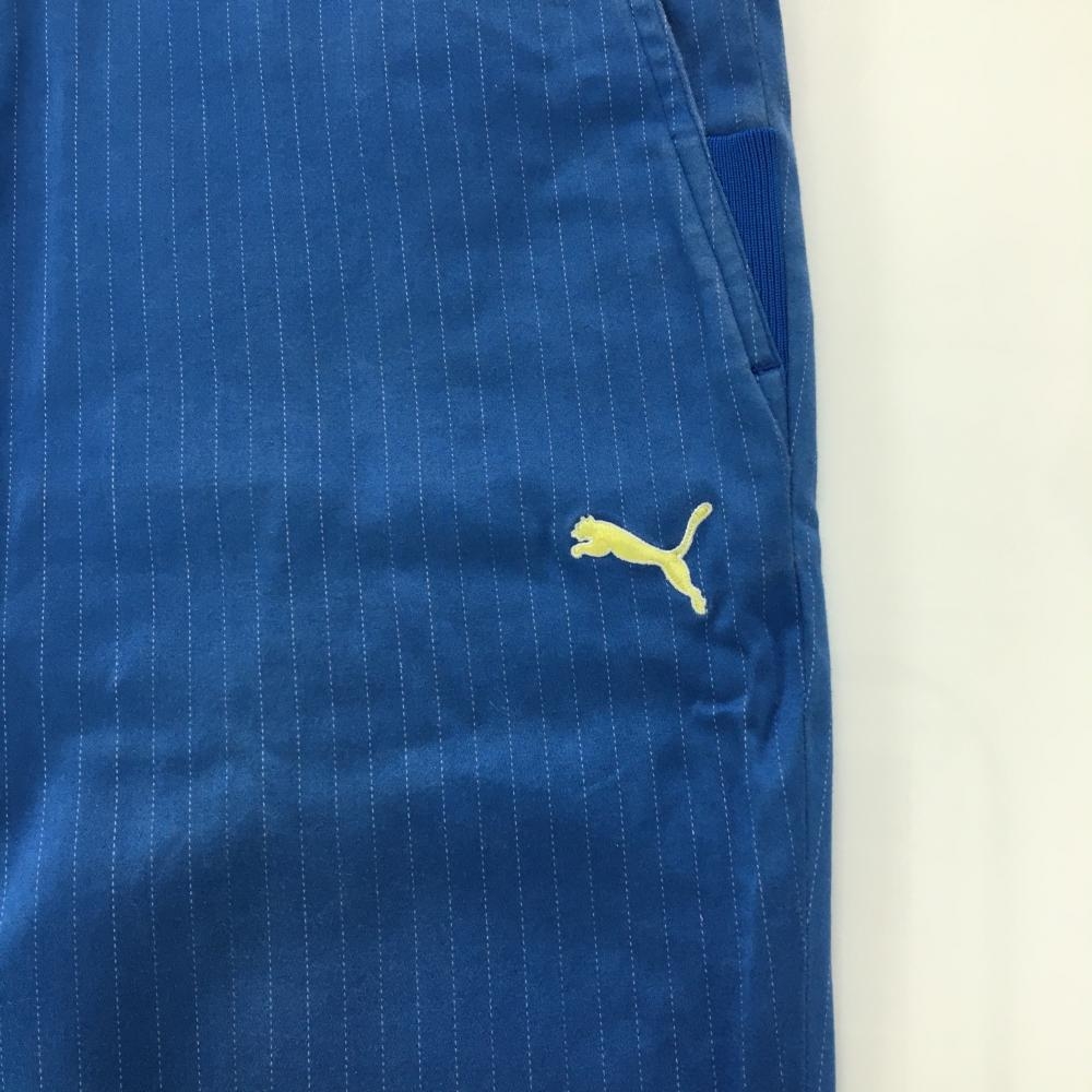 【美品】プーマ パンツ ブルー×白 ストライプ ロゴ刺しゅう メンズ 82 ゴルフウェア PUMA