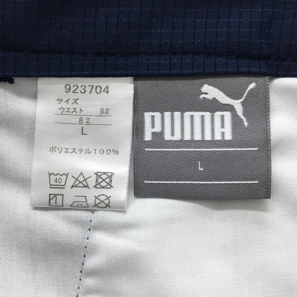 【超美品】プーマ パンツ ネイビー 格子柄地模様 ロゴ刺しゅう メンズ L ゴルフウェア PUMA