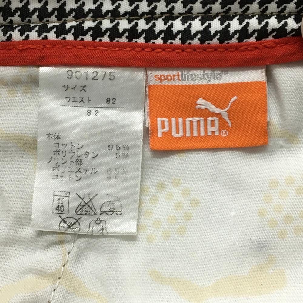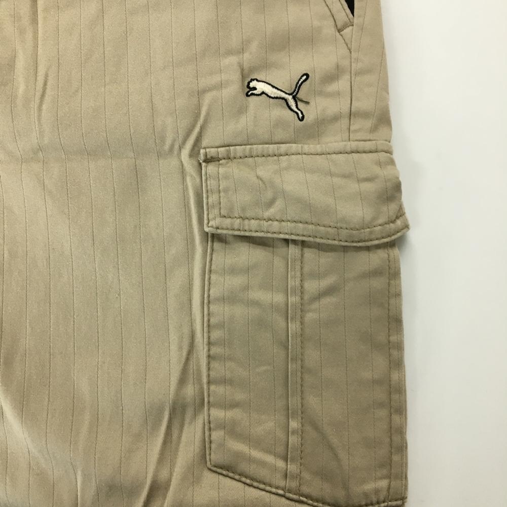 【美品】プーマ カーゴパンツ ベージュ ストライプ地模様 ロゴ刺しゅう ストレッチ メンズ 82 ゴルフウェア PUMA
