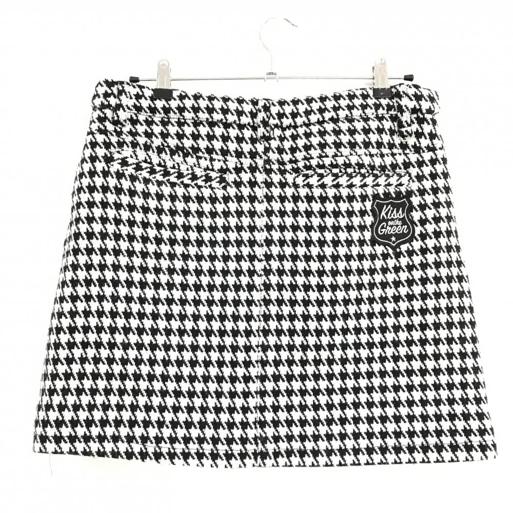 【美品】キスオンザグリーン 中綿ニットスカート 白×黒 千鳥格子 レディース 3(L) ゴルフウェア kiss on the green