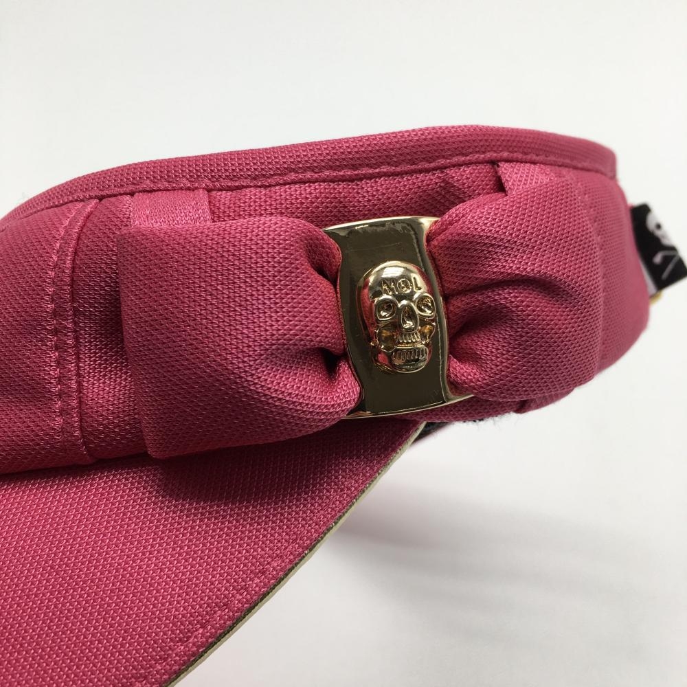 【美品】マークアンドロナ サンバイザー ピンク ラインストーンロゴ スカル リボン レディース FREE ゴルフウェア MARK&LONA