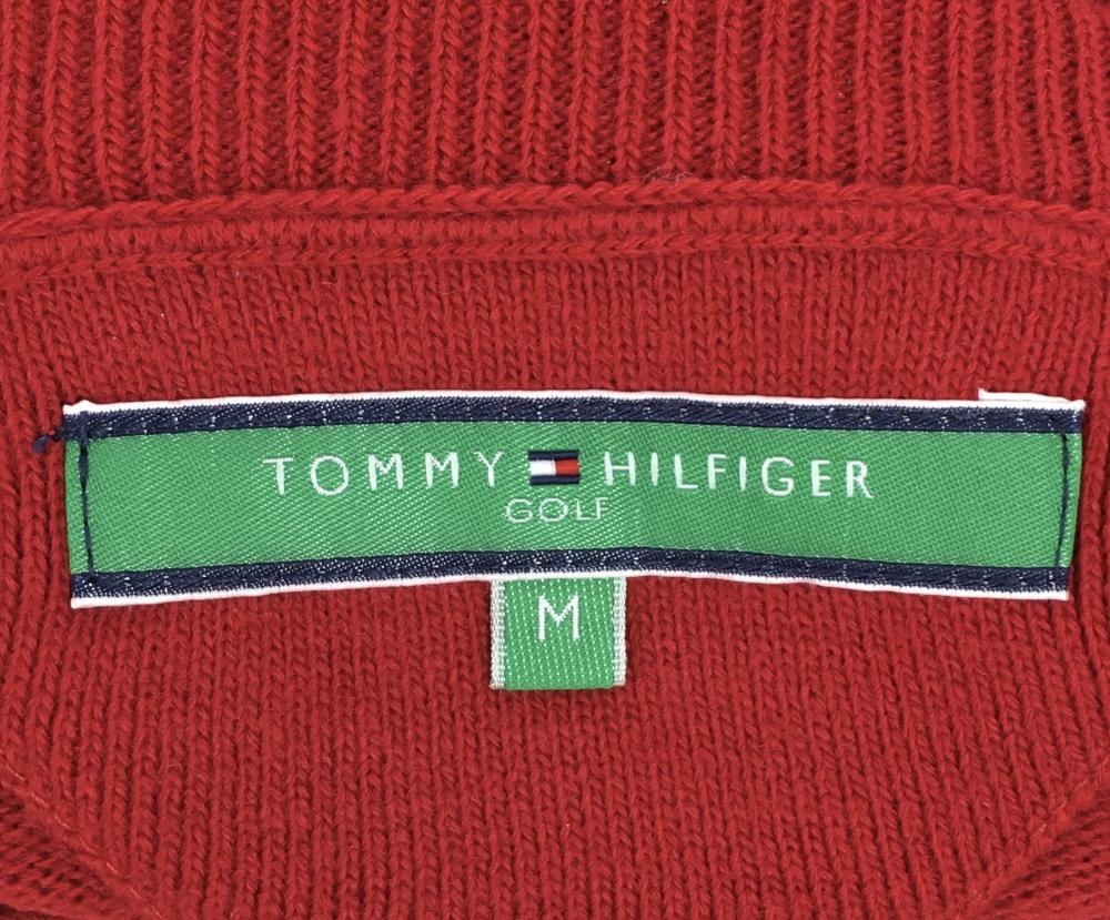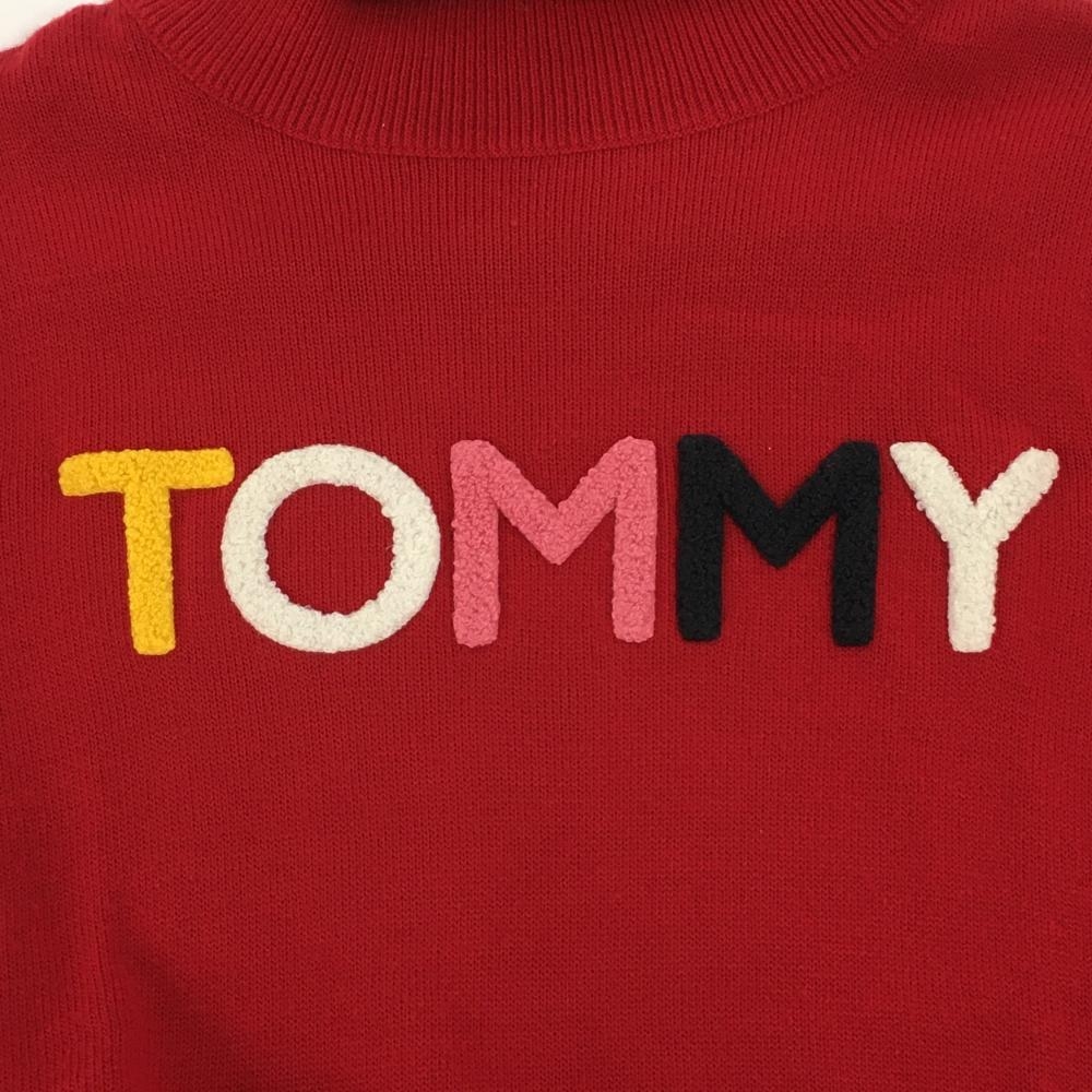 【美品】トミーヒルフィガー ハイネックセーター レッド×白 フロントロゴ レディース M ゴルフウェア Tommy Hilfiger Golf