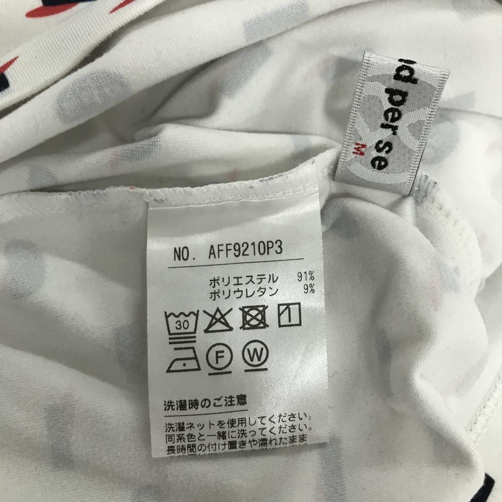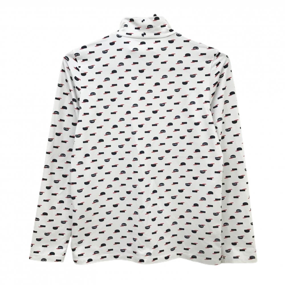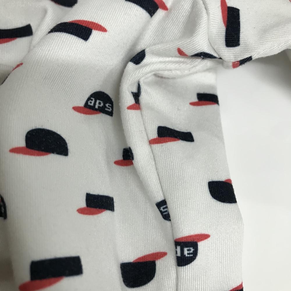 アンパスィ 長袖ハイネックシャツ 白×ネイビー×レッド キャップ総柄 レディース M ゴルフウェア and per se