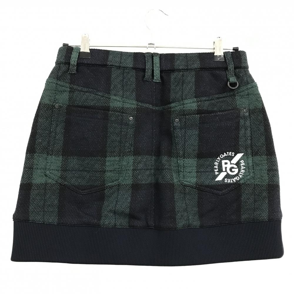 【新品】パーリーゲイツ スカート グリーン×ネイビー チェック 微起毛 裾リブ レディース 1(M) ゴルフウェア PEARLY GATES