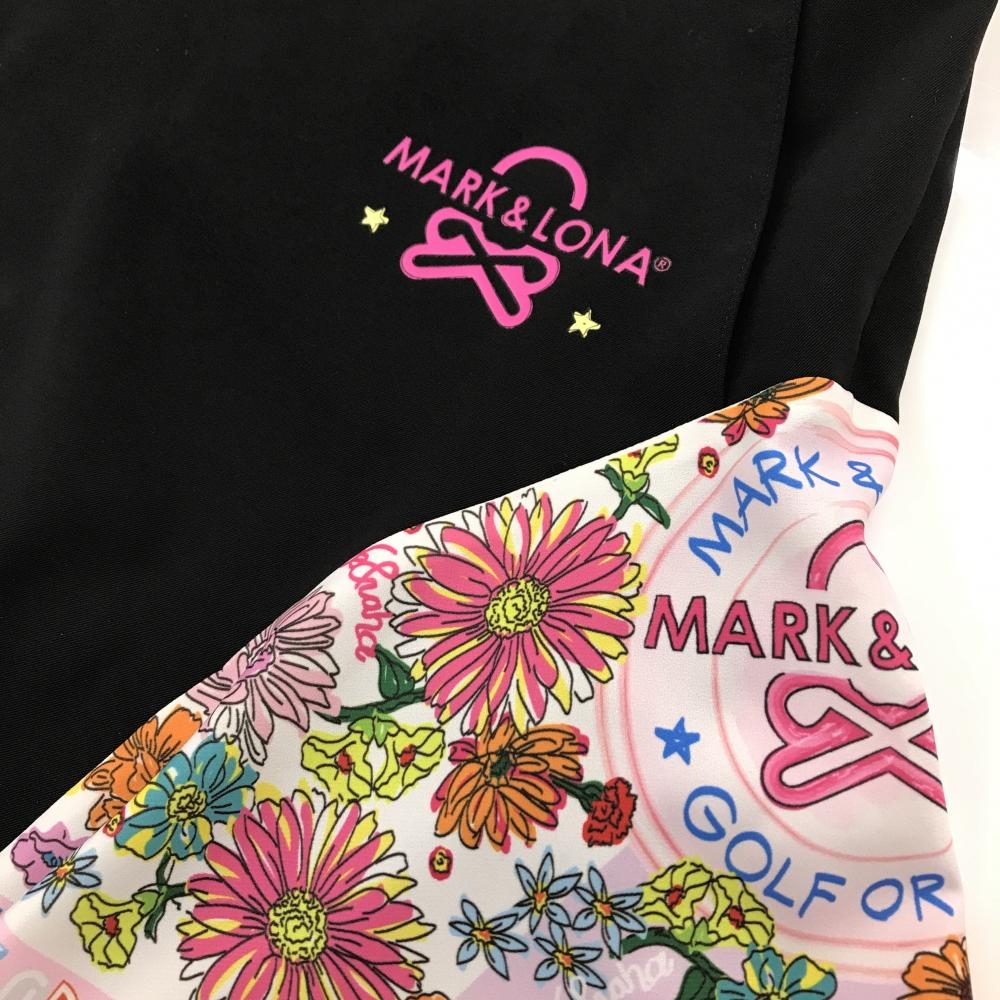 【美品】マークアンドロナ スカート 黒×ピンク サイド花柄 ストレッチ レディース 36(S) ゴルフウェア 2025年モデル MARK&LONA
