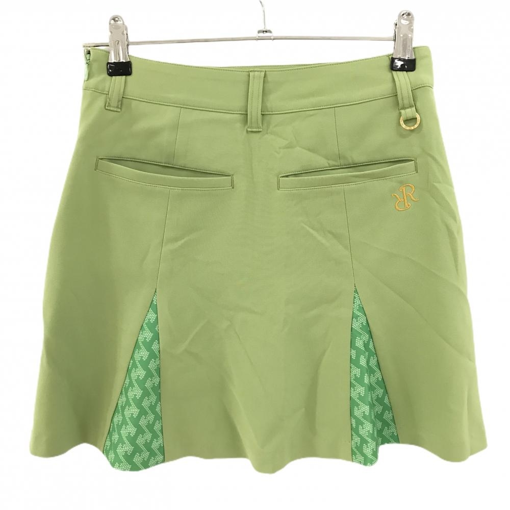 【超美品】レザレクション スカート ライトグリーン×白 一部柄 ロゴ刺しゅう レディース XS ゴルフウェア 2024年モデル Resurrection