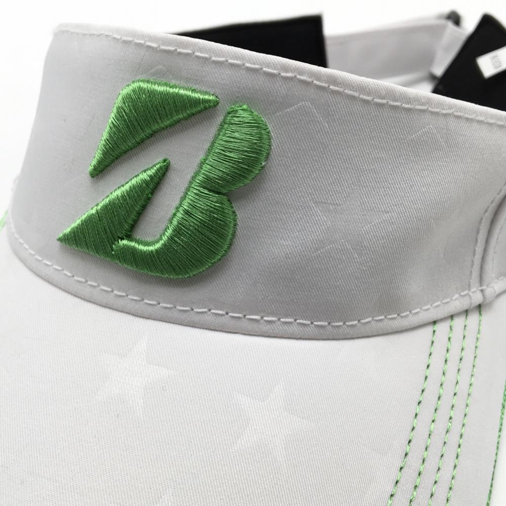 【超美品】ブリヂストンTOURB サンバイザー 白 星地模様 ロゴライトグリーン 56.5cm ゴルフウェア Bridgestone